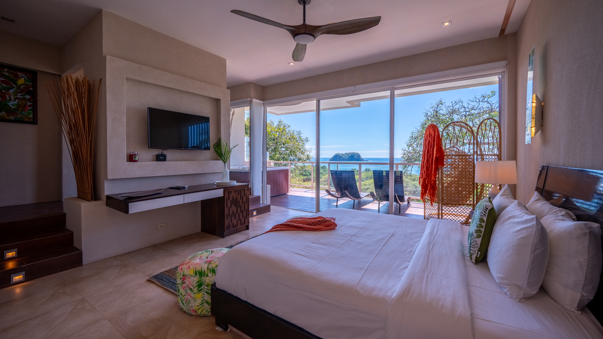 The heart of Casa Blanca is its captivating view of the Pacific Ocean and the picturesque Samara Beach, a panorama that takes your breath away at every glance. Whether it’s from the soothing waters of your private jacuzzi or the serene heights of your bedroom, each view is a canvas of ever-changing ocean hues and skies.