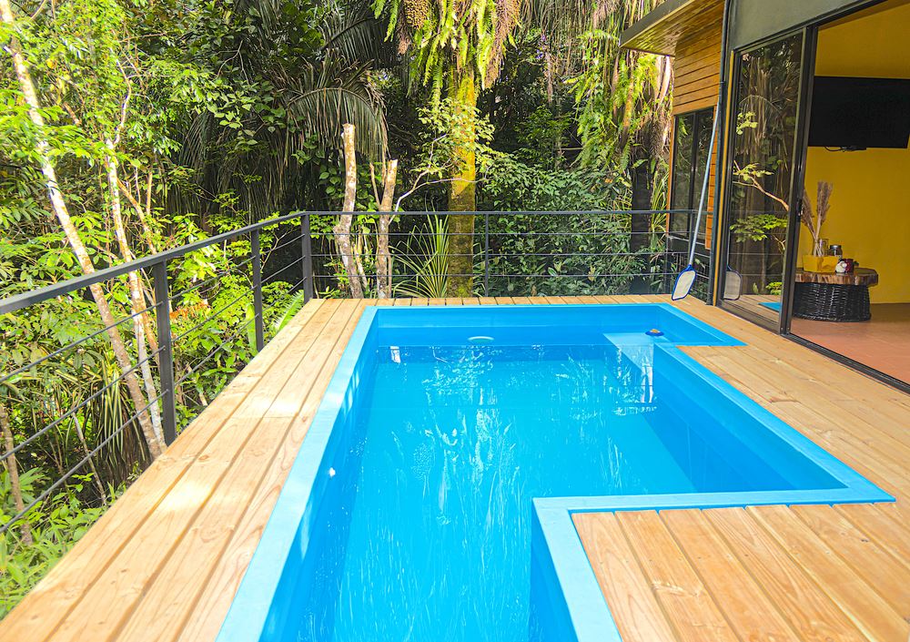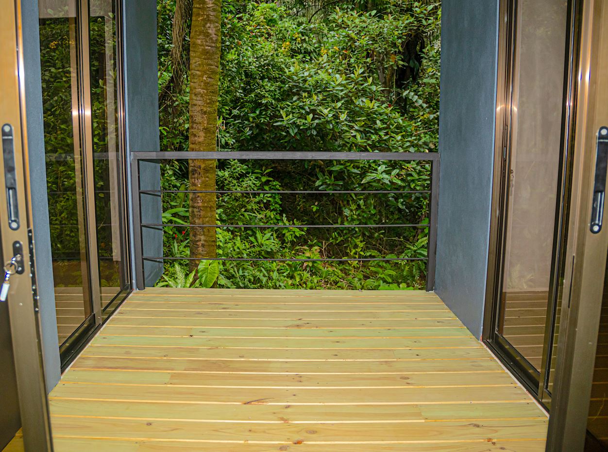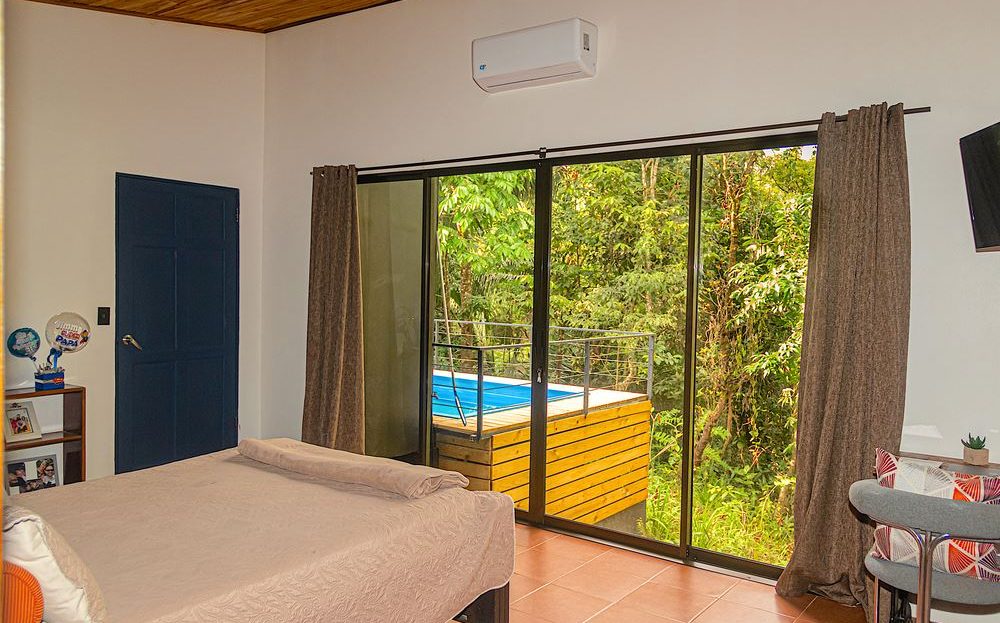 Air conditioning, modern finishes, and floor-to-ceiling windows to take in the jungle surroundings