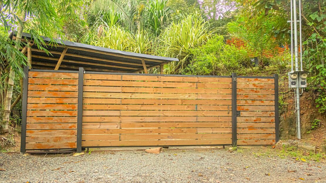 A private gated entrance with an automatic gate and carport ensures privacy and separation from guest areas