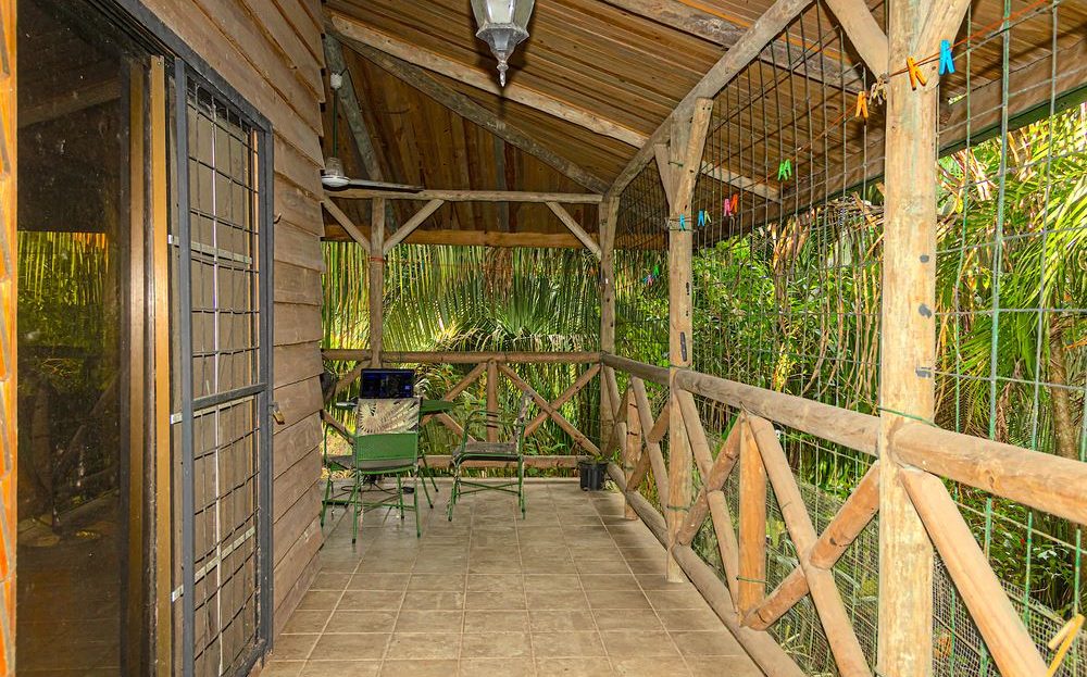 Upper Apartment: Two bedrooms, two bathrooms, and a wraparound veranda with panoramic jungle views