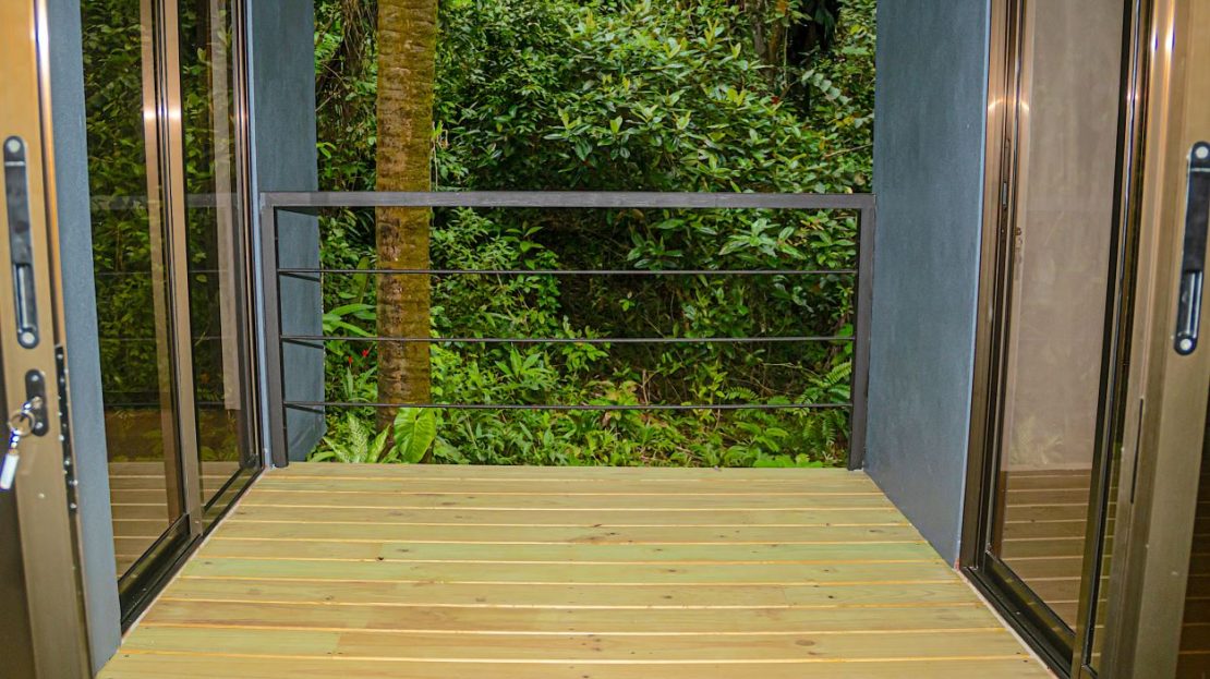A wraparound covered veranda on two sides with stunning views of the surrounding rainforest