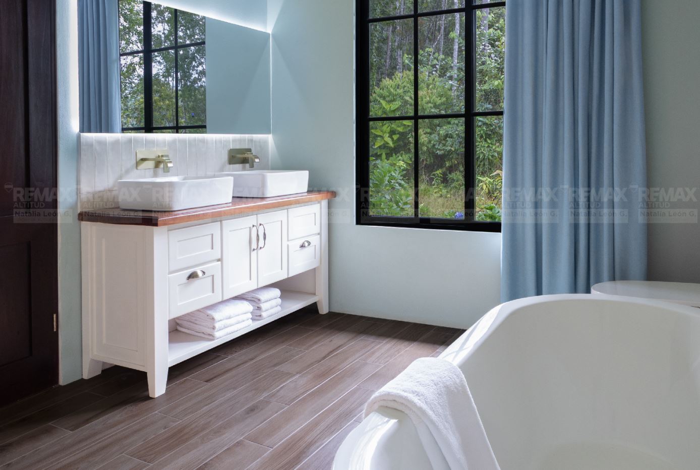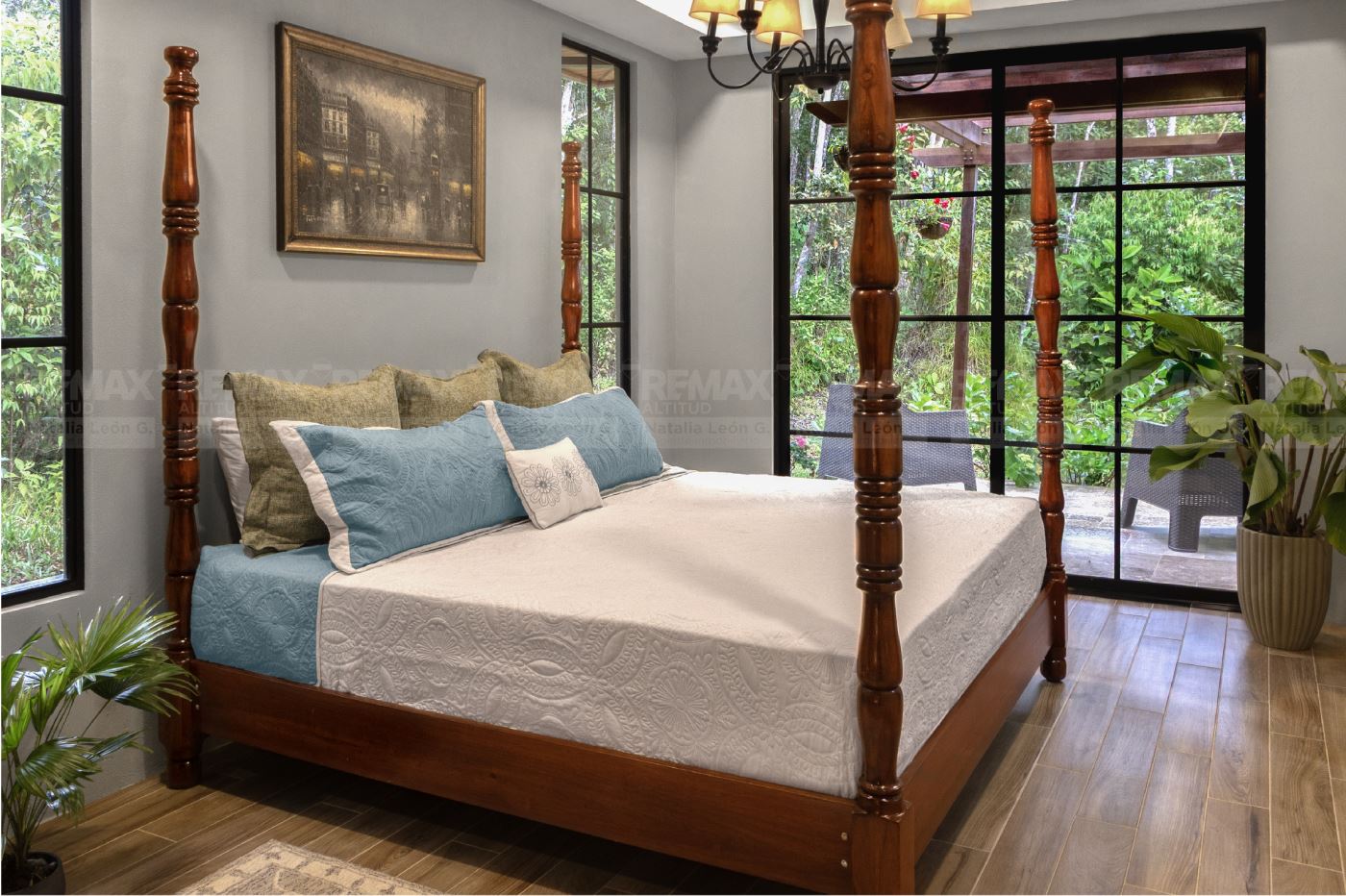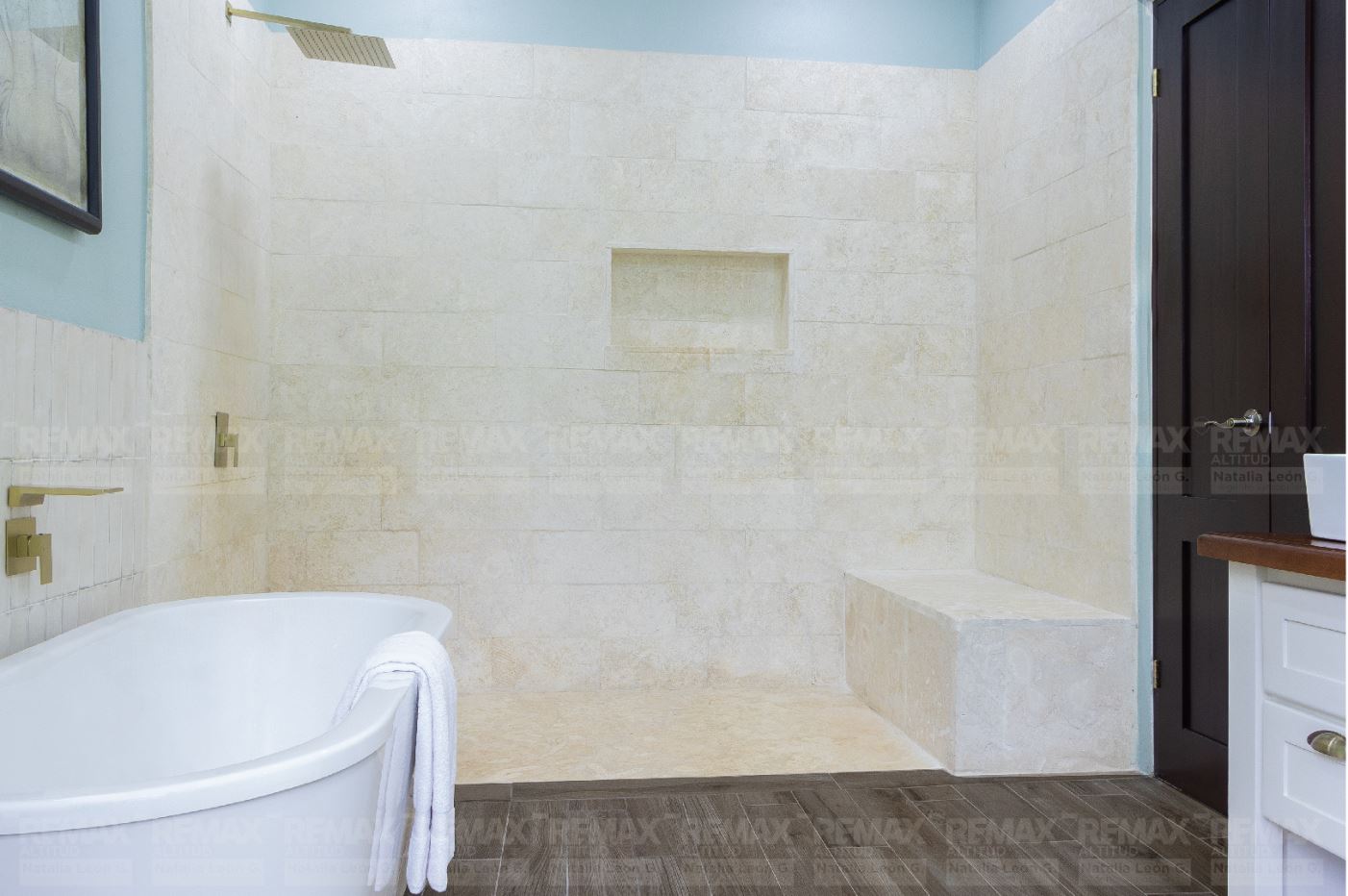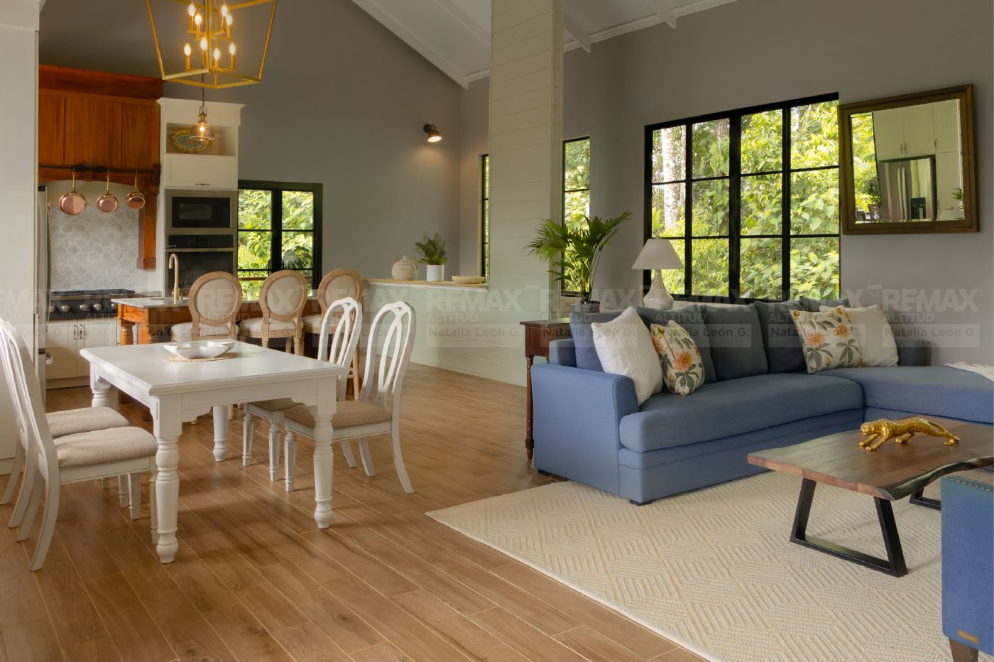 • Acabados de Alta Gama: Pisos exteriores de travertino, encimeras de cocina en cuarcita, detalles en piedra natural, techo de cobre, gabinetes y cielos de maderas exóticas, y electrodomésticos de acero inoxidable.