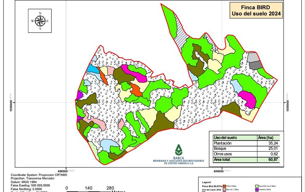 The farms contain 149 ha of natural forest that have been protected by BARCA and provide an environmental anchor with the possibility of attaining future compensation under the Payment for Ecosystem Services – “Pago de Servicios Ambientales” – of the FONAFIFO-MINAE program. These natural forests represent important corridors for the flora and fauna of the region. The BIRD farms are FSC® certified with certification Code: NC-FM/COC-000152.3.