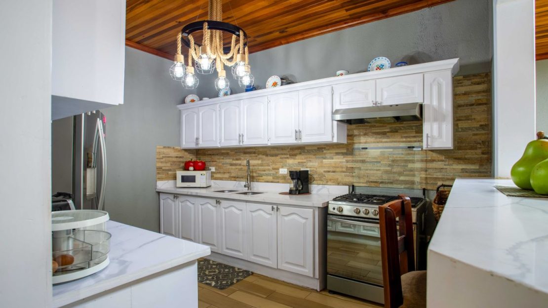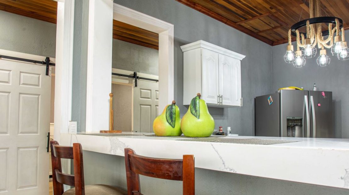 Large 5 room home that could be mixed use located just 4 minutes from town center in a private and natural enroinment adjacent a high end Atenas community. The property features a large entry with plenty of parking with a newly remodeled 2 apartment homes that can be combined to become one, with tall wooden ceilings throughout. The first apartment open floor plan feautures a formal living area, ample kitchen and dining areas. There is an extra large bedroom and ample size guest room with shared bath. The second apartments also has two bedrooms and one bath.