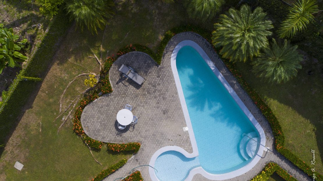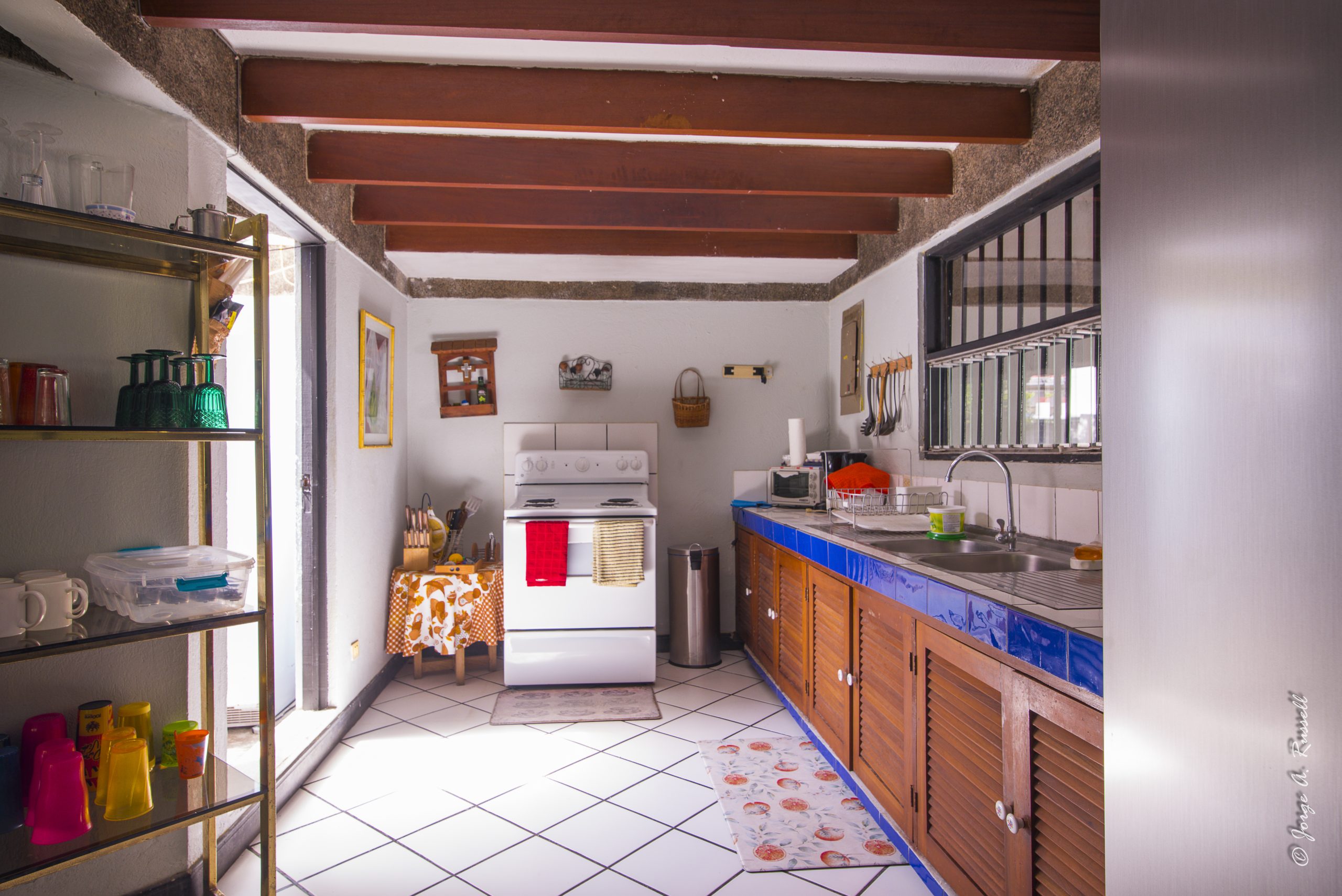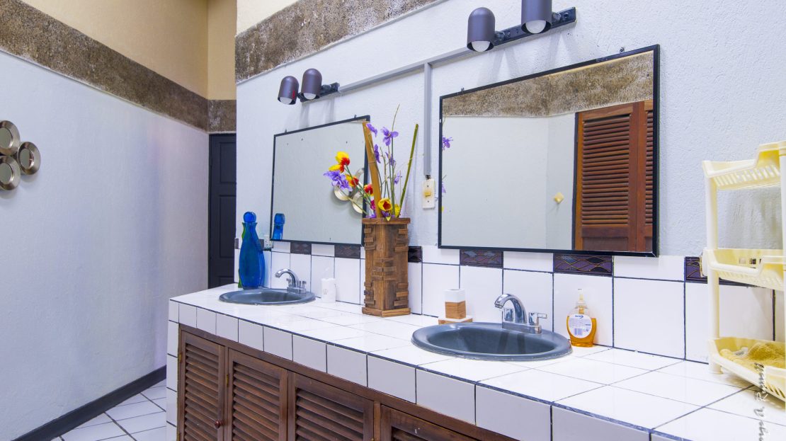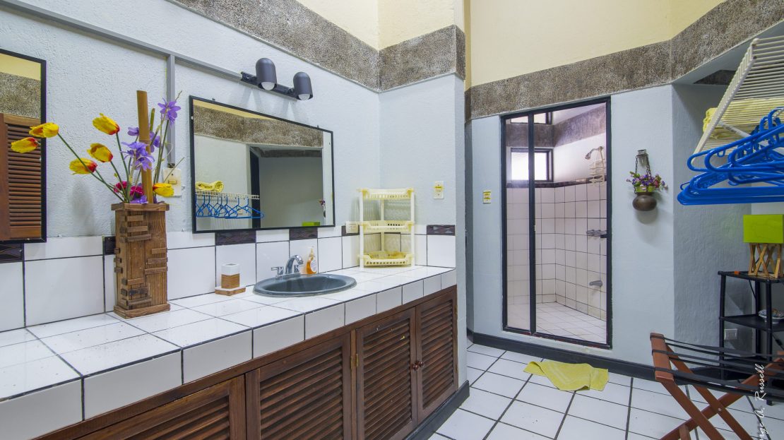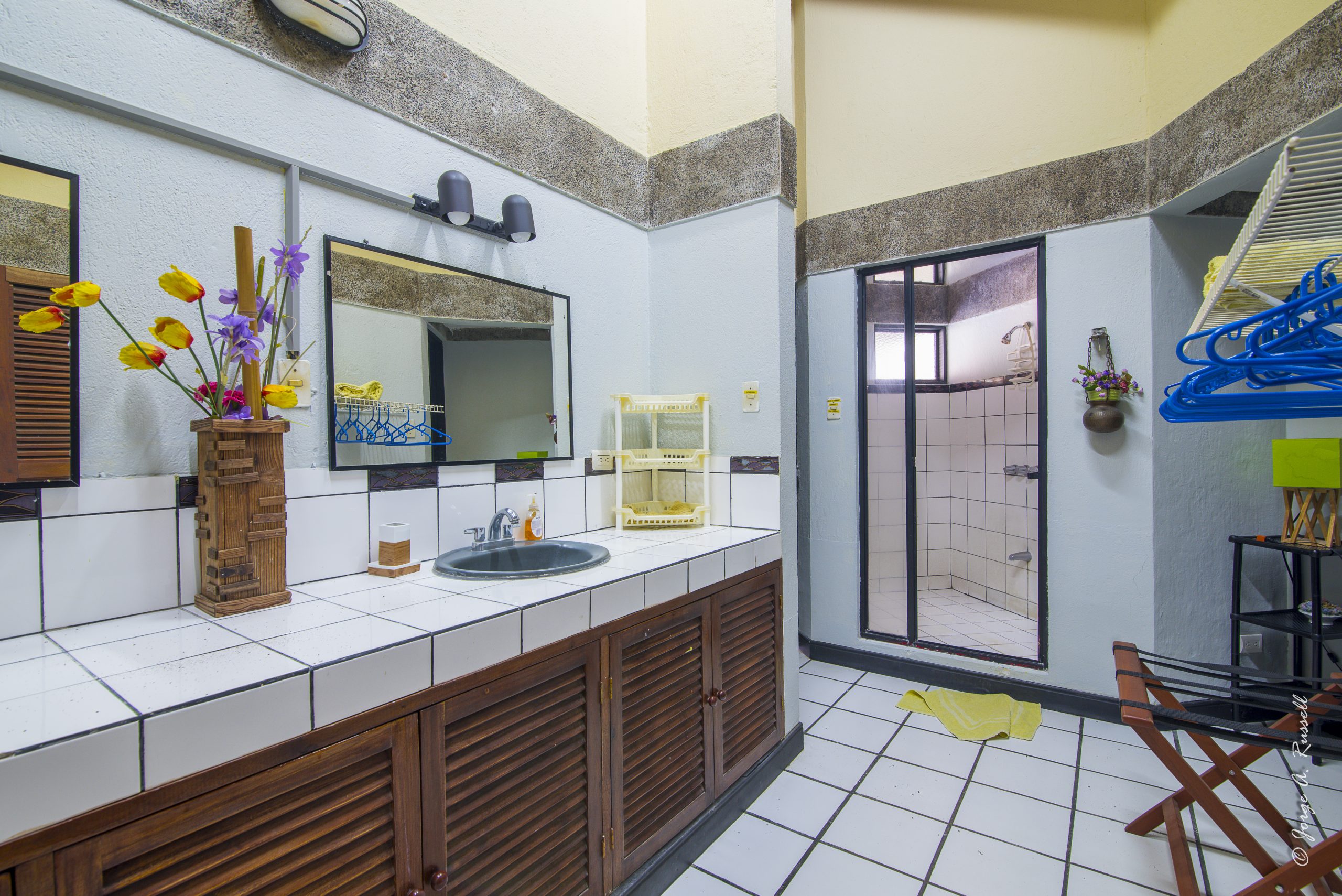 The home sits on a 754 m² lot and features a thoughtful two-level design. The first bedroom sits on the ground floor in a private suite with a full bathroom and walk-in closet. Four additional bedrooms occupy the upper level, giving families or groups plenty of space. In total, the house includes five bathrooms, including one that serves the pool area. The residence also includes a water pump, a large water collection tank, and a hot water tank that supplies all bathrooms.
