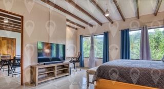 The rooftop terrace provides sweeping views of Lake Arenal and the volcano and offers tremendous potential for enhancement. With ample space for a kitchen setup, it could easily accommodate a gas grill, prep area, and plenty of seating, making it the perfect spot for casual barbecues, sunset cocktails, or open-air dining while enjoying the breathtaking scenery. The terrace could also double as a yoga deck, enhancing its appeal for wellness-focused guests and further expanding the income potential of the property. For those seeking healthy lifestyle choices and retreat-style experiences, this versatile space offers multiple benefits.