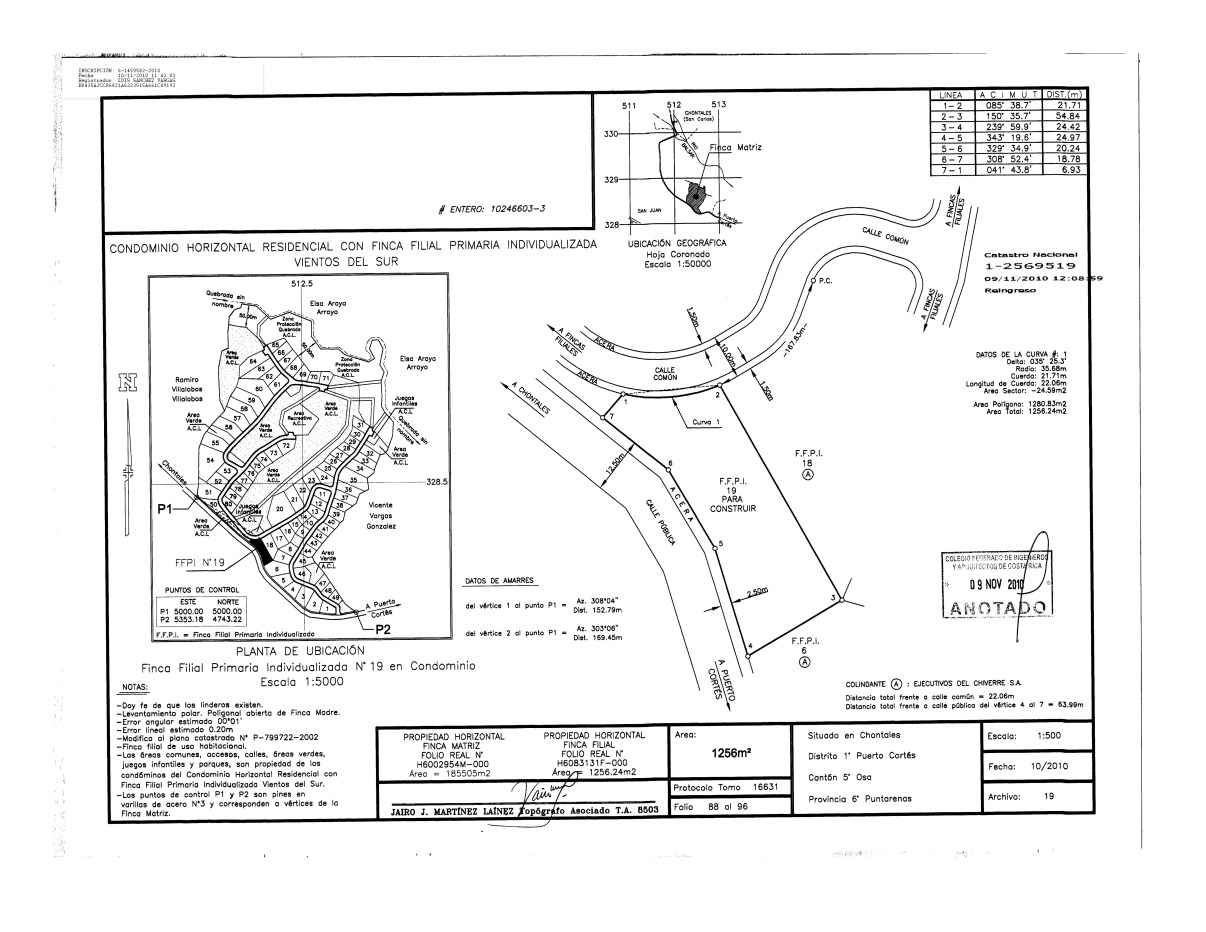 Ready to build 1256m2 lot 19 in Chontales new development. Electricity and water at the property line. To the east is a stunning 180 degree view of mountains with everchanging clouds, and to the west, valley, river and ocean view. Trully stunning views all around. 5 minute drive to the highway where you’ll find the village of Cortez with many ammenaties including an international hospital. 20 minutes to Ojochal, the food capital of Costa Rica.