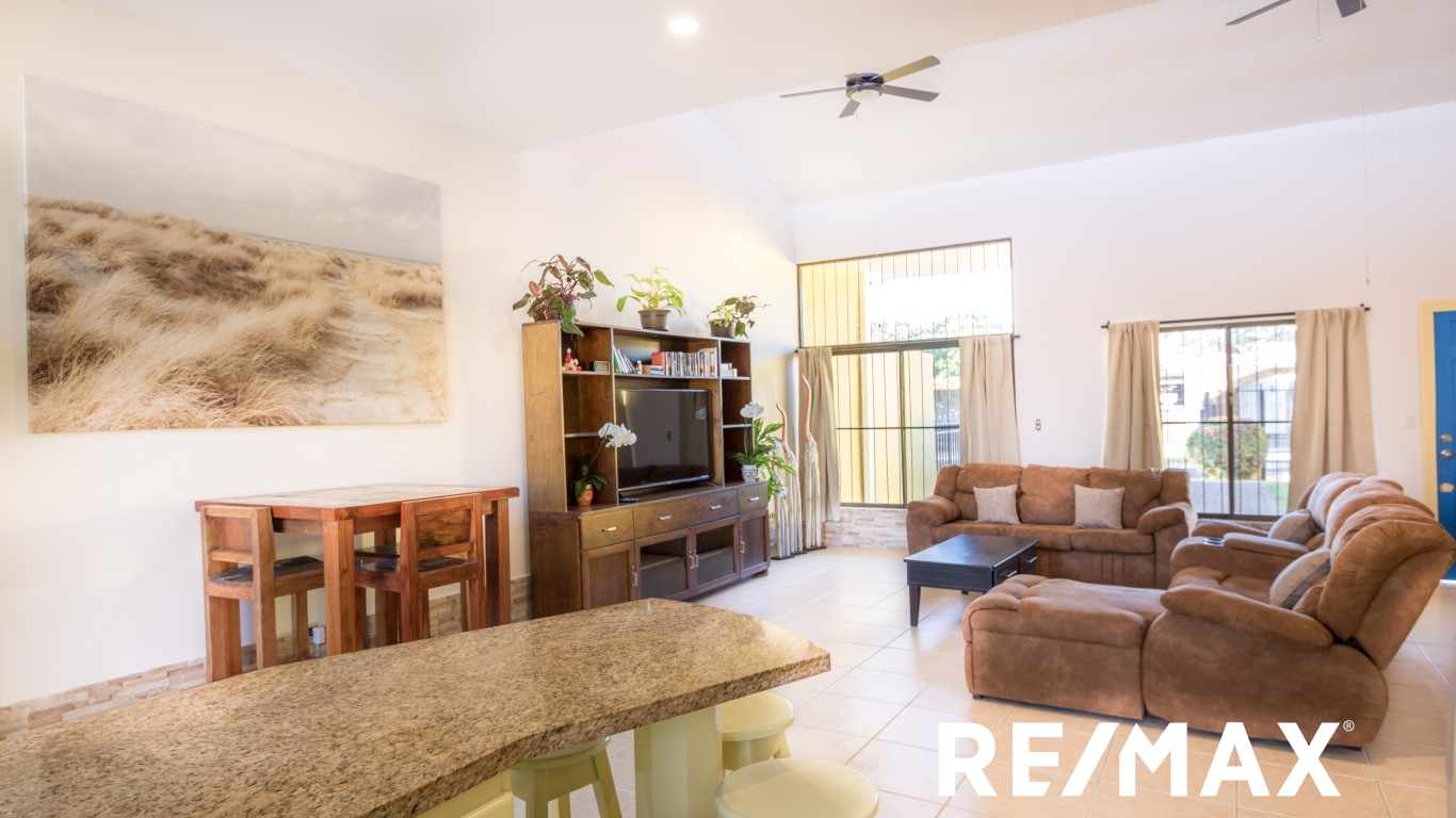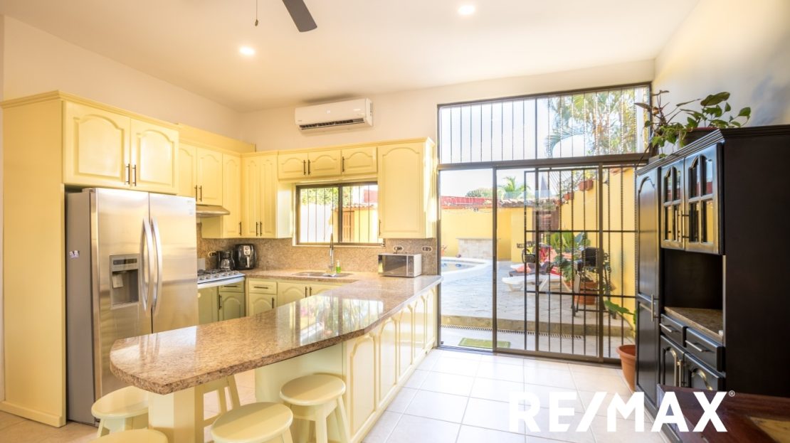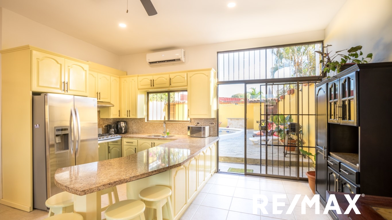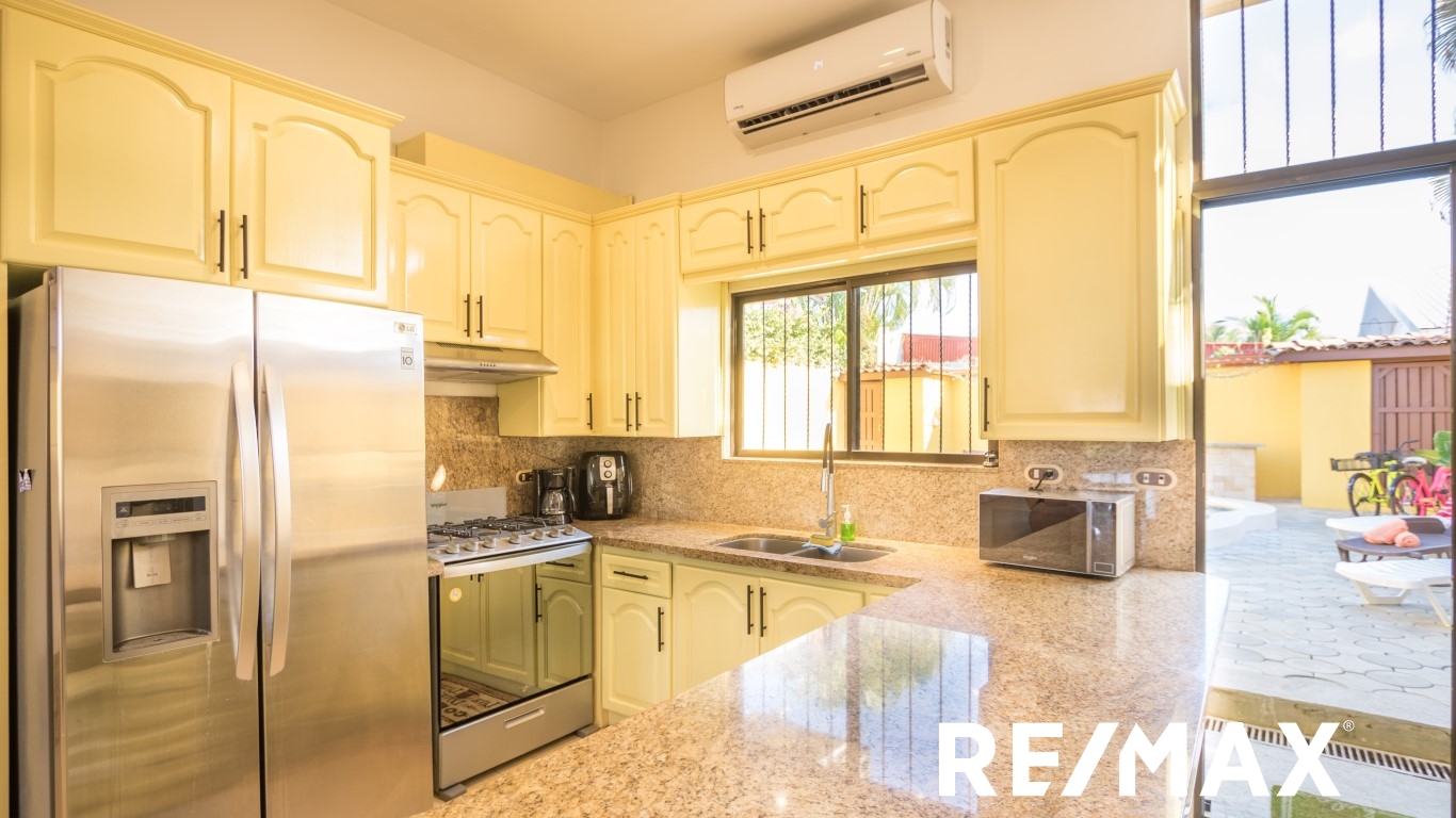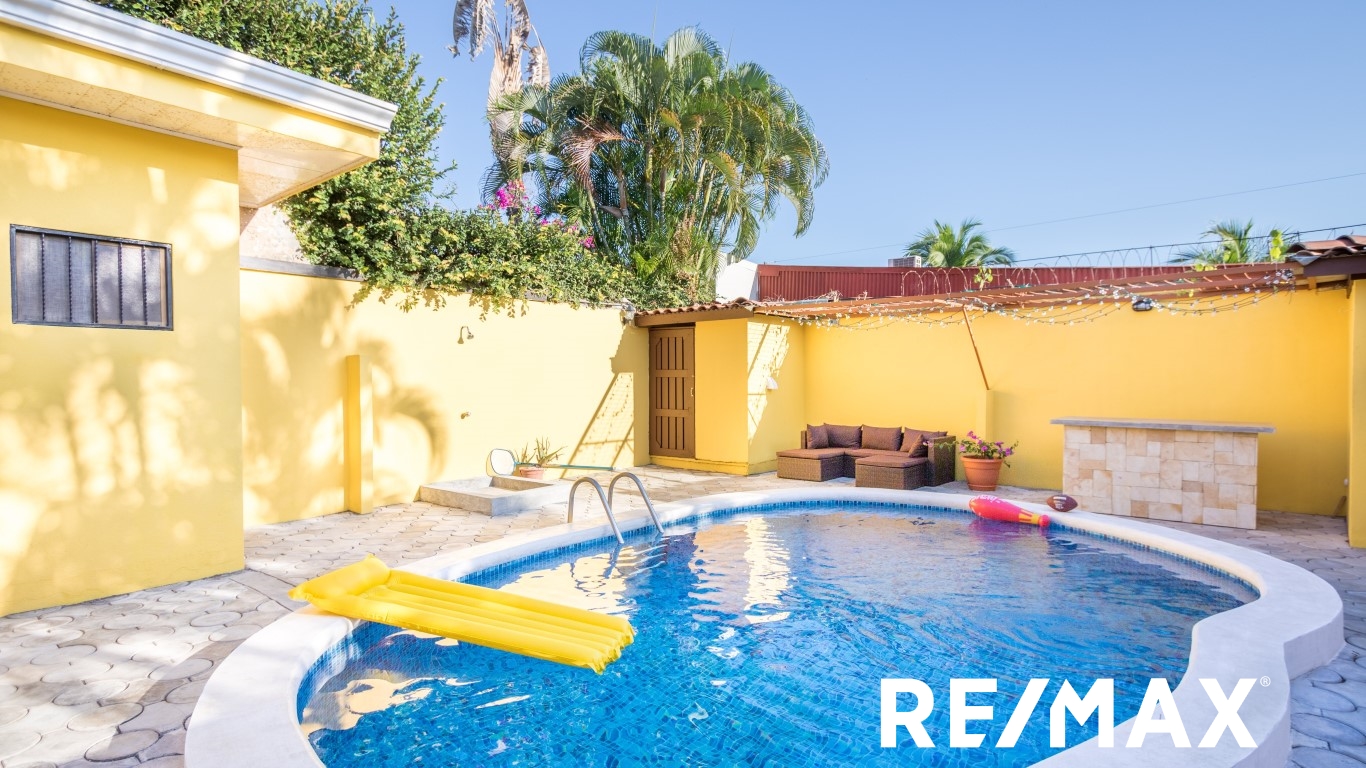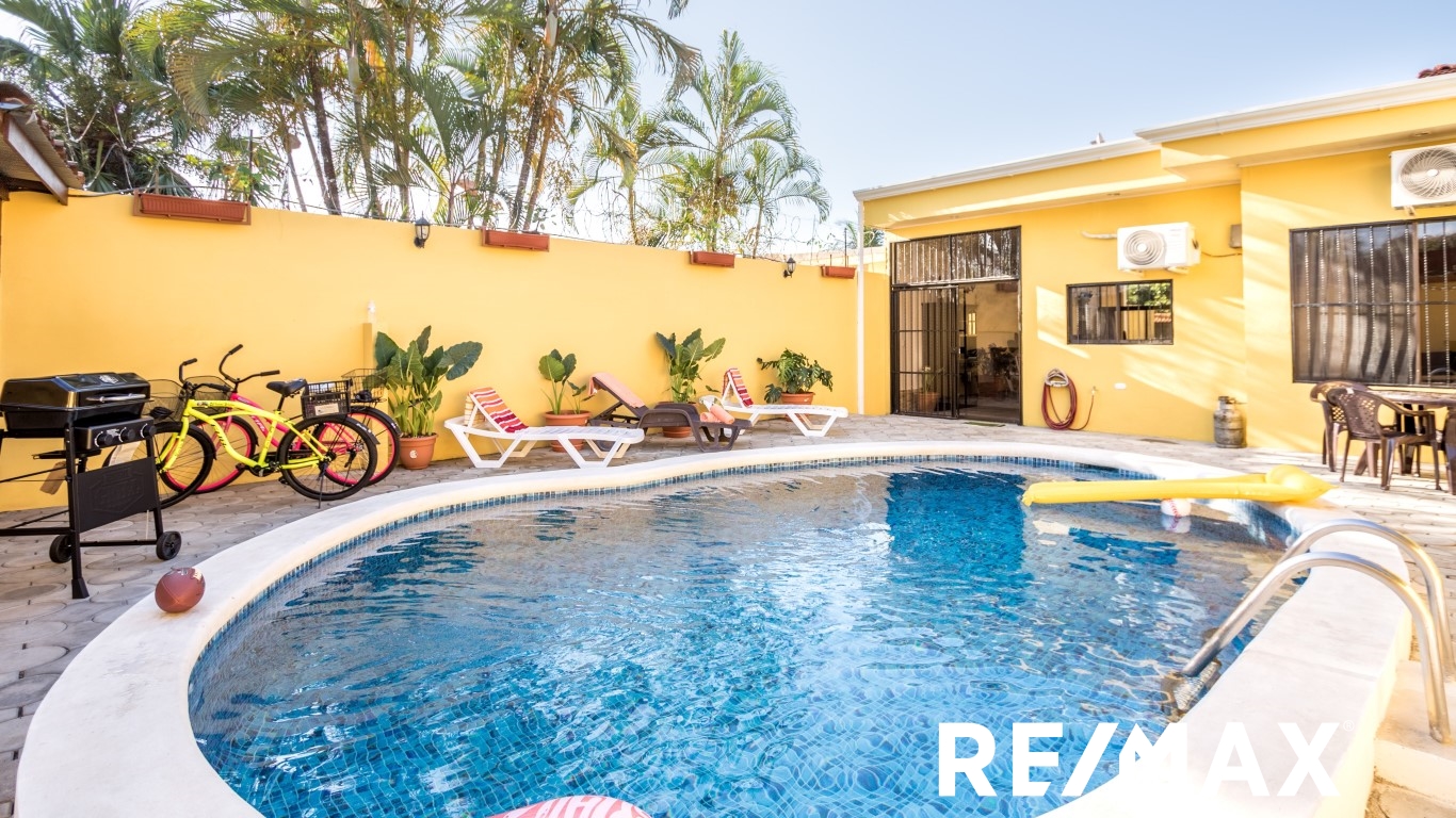 Renovated | Private Pool home is located in Jaco Sol, only 2 blocks from the beach and within walking distance of downtown Jaco. This home has been recently remodeled and is ready for you!! Driving up to the home, you will see a great front yard and ample parking for 4 cars. Entering the front door, you walk into the large open floor plan living, dining, and kitchen area which leads out to the great backyard with a private pool and bathroom. Inside you have 2 bedrooms with a Jack-and-Jill bathroom, and a large master suite with a master bath.