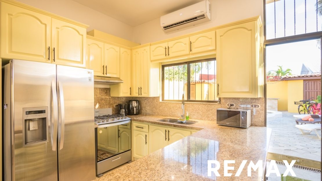 Rénové | La maison avec piscine privée est située à Jaco Sol, à seulement 2 pâtés de maisons de la plage et à distance de marche du centre-ville de Jaco. Cette maison a été récemment rénovée et est prête pour vous !! En conduisant jusqu’à la maison, vous verrez une grande cour avant et un grand parking pour 4 voitures. En entrant par la porte d’entrée, vous entrez dans le grand salon, salle à manger et cuisine à aire ouverte qui mène à la grande cour arrière avec une piscine privée et une salle de bains. À l’intérieur, vous avez 2 chambres avec une salle de bain Jack-and-Jill et une grande suite parentale avec une salle de bain principale.