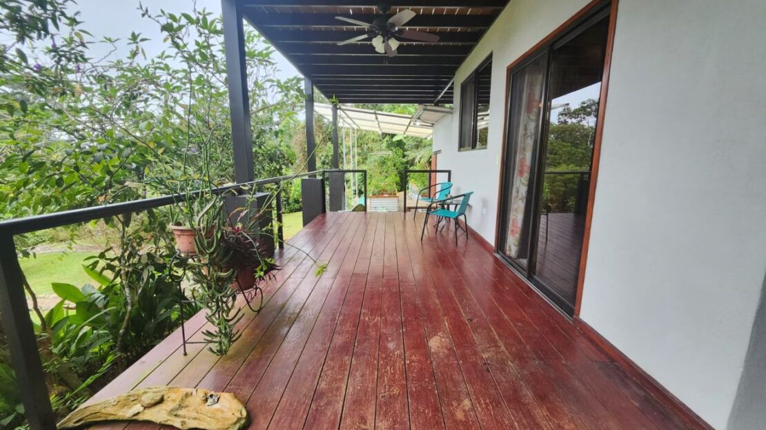 This is the perfect property for those who want proximity to the beach but prefer to live in the fresh climate of the mountains. Enjoy sunrise views of the Talamanca Mountain range in a friendly community of expats just 35 minutes from Ojochal and the beautiful Playa Ventanas beach. This spacious home offers peace, comfort, and relaxation and sits on 1.79 acres, bordering a beautiful creek known to the locals as monkey highway! Enjoy being immersed in the flora and fauna running along the creek and privacy. The upper level of the house has 2 bedrooms with plenty of closet space and views of the well-manicured garden. Upstairs also has a large bathroom with a granite vanity and a big walk-in shower.