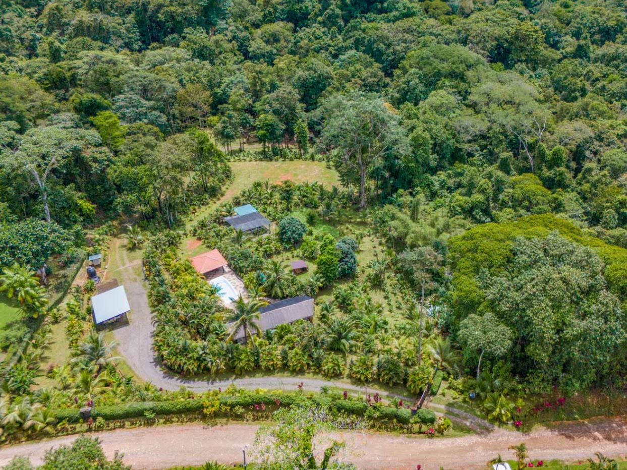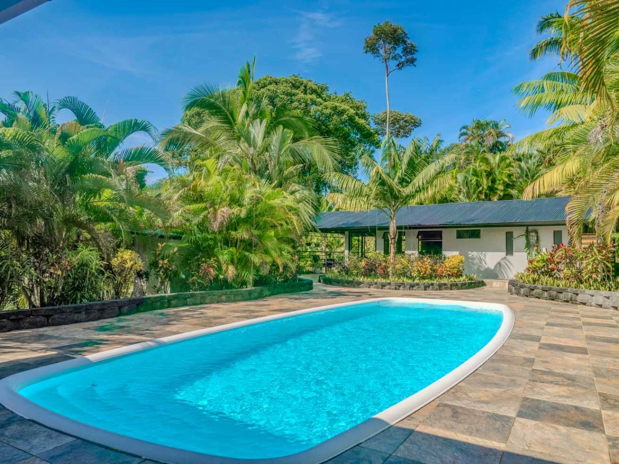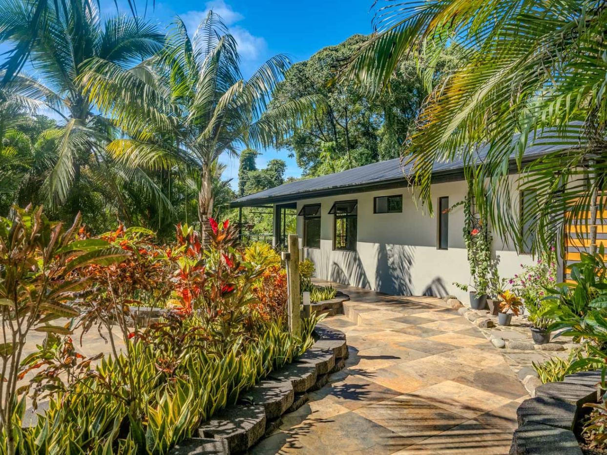 This immaculately landscaped, private and lush jungle property with a creek, river and a breathtaking waterfall is situated on a huge 3.8-acre lot. With an airy home, refreshing pool and lush natural surroundings it is a true oasis of natural beauty and tranquility. Perfect for those wishing to live amongst nature while still being close to all the services & amenities of our wonderful area. Conveniently located just 5 minutes from the Coastanera Hwy, a mere 10 minutes from Ojochal and 15 minutes from Uvita, this property offers easy access and unparalleled seclusion. A tropical paradise with 100% useable land – ready for a peaceful escape or exciting residential or commercial development!