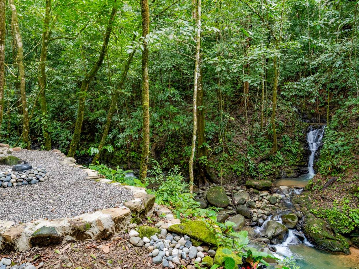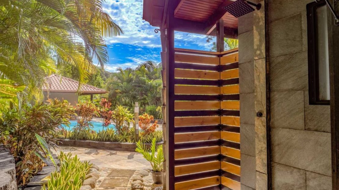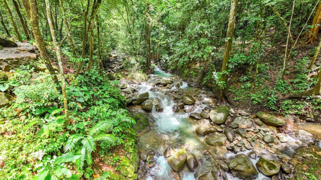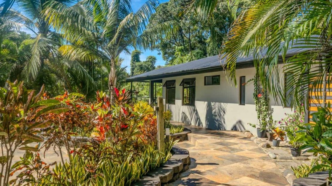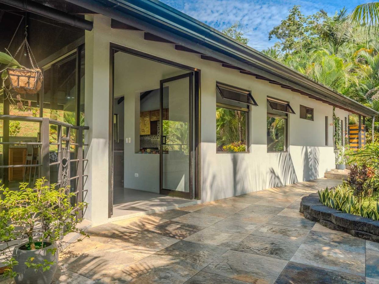 This immaculately landscaped, private and lush jungle property with a creek, river and a breathtaking waterfall is situated on a huge 3.8-acre lot. With an airy home, refreshing pool and lush natural surroundings it is a true oasis of natural beauty and tranquility. Perfect for those wishing to live amongst nature while still being close to all the services & amenities of our wonderful area. Conveniently located just 5 minutes from the Coastanera Hwy, a mere 10 minutes from Ojochal and 15 minutes from Uvita, this property offers easy access and unparalleled seclusion. A tropical paradise with 100% useable land – ready for a peaceful escape or exciting residential or commercial development!