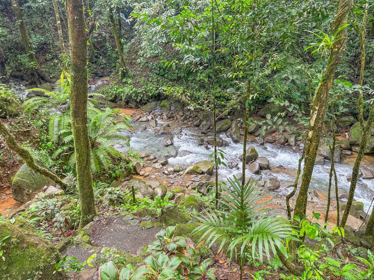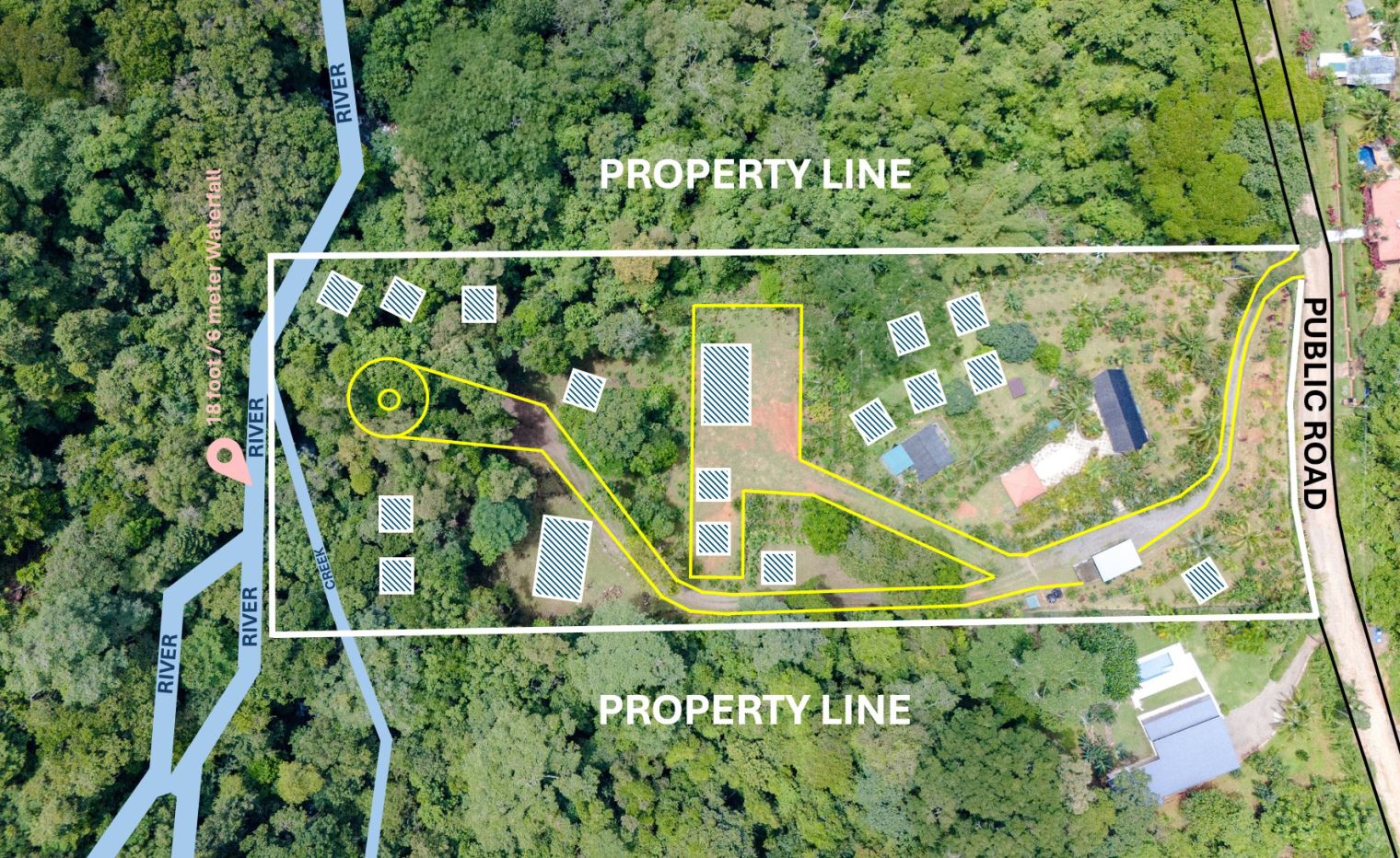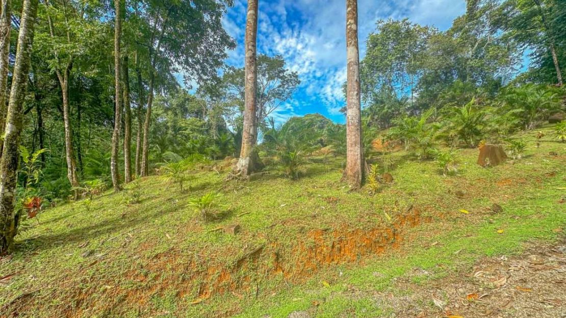 As you step onto this land you will be greeted by lush landscaping of flowering plants and varieties of palms creating a vibrant and inviting atmosphere. Majestic old trees stand tall, providing shade and habitat for local wildlife which includes toucans, macaws, parrots, monkeys, sloths, anteaters, coatis, raccoons, and the majestic blue morpho butterflies. The property borders the magnificent Rio Luna Media with 76 meters / 250 ft. of cascading river frontage and a magnificent 6m / 18ft waterfall that can be seen and heard from many of the future building sites scattered up and down the property. River otters happily frolic in the Rio Luna Media swim holes and cascades, adding to its charm.