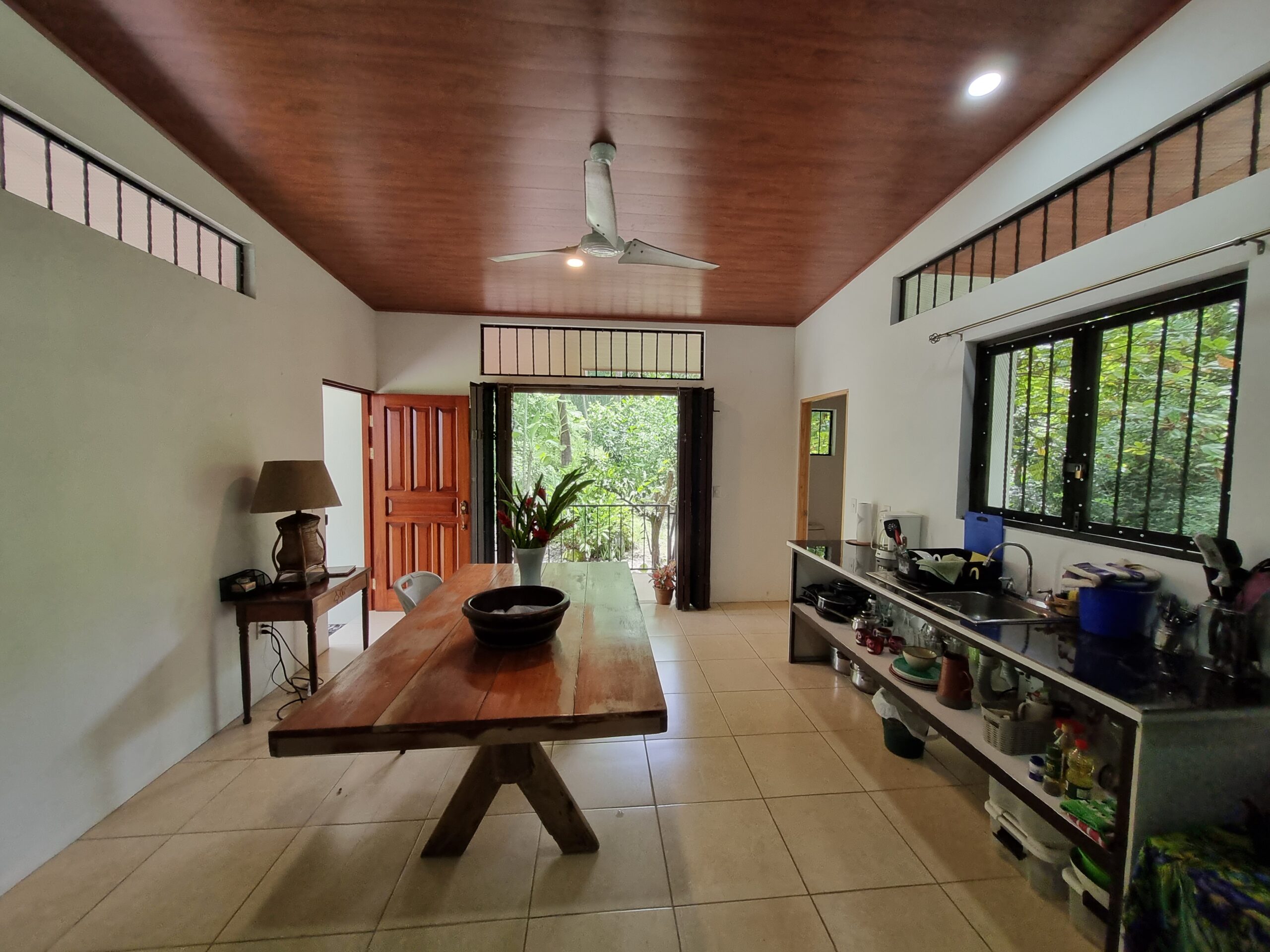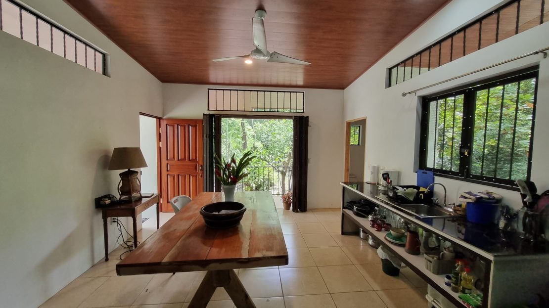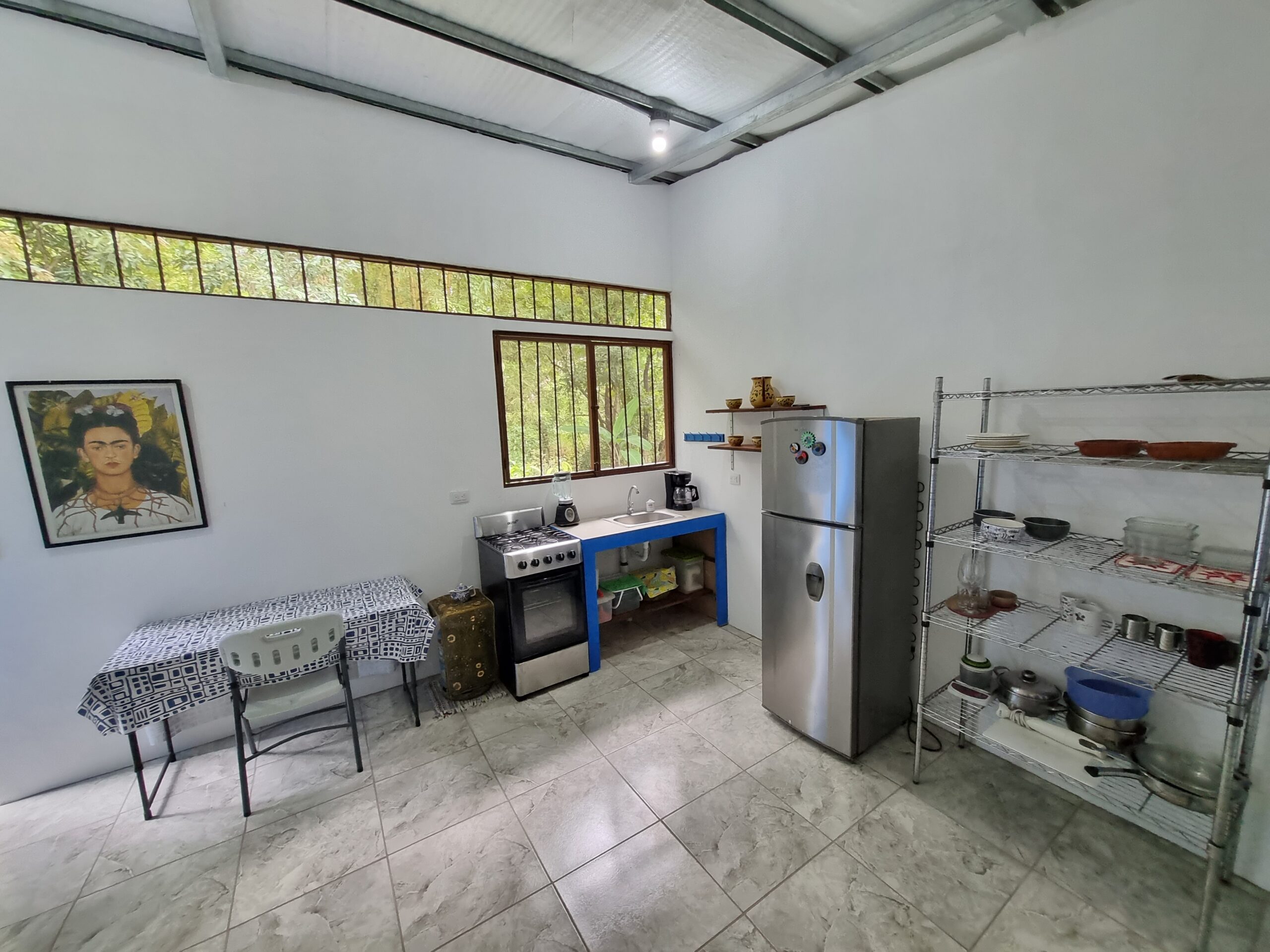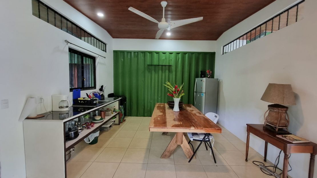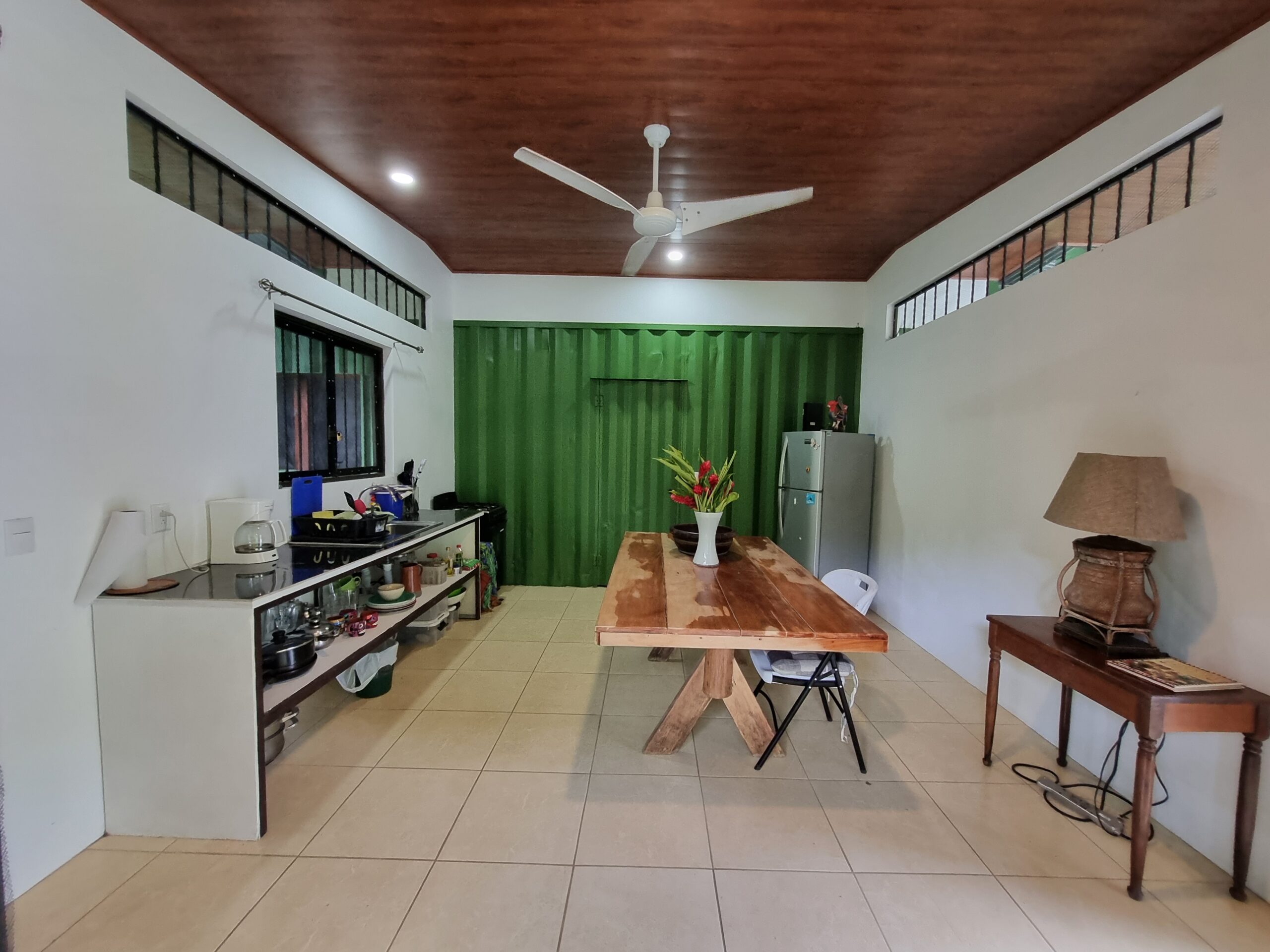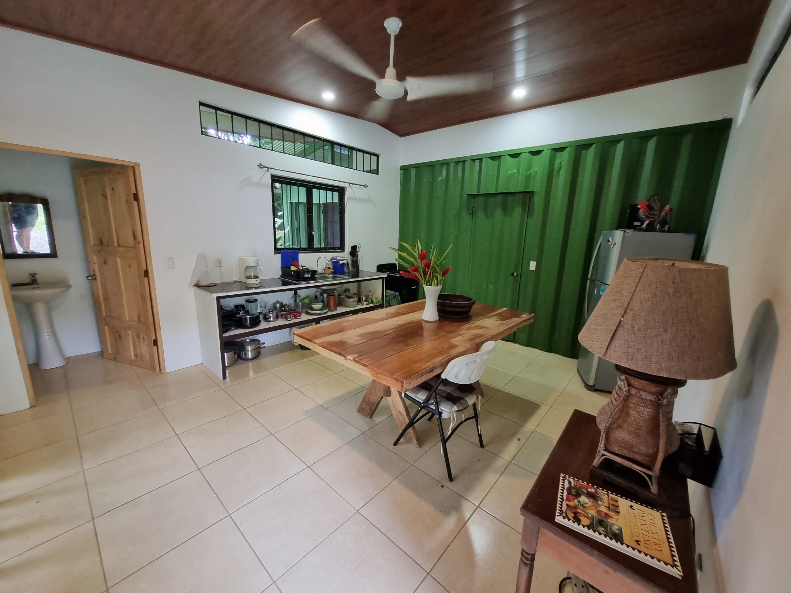 When you think about Costa Rica you think about lash green landscape, rainforest, waterfalls, wildlife, some of the most beautiful beaches and forever summer. It is all true. But not too many properties would tick all those boxes like this one. This property is very unique and is dream come true for a nature lover. Located on the end of the dead-end-street this 1,487 m2 lot has river front entire length of the property. Surrounded with nature and very few neighbors this property offers privacy, peace and tranquility. Property consists of two separate buildings with their own independent entrances. First building is a home with 2 bedrooms and 1.5 bathrooms built from a shipping container which in Costa Rica is very popular building method. Very well secured which allows the owners to leave a home for extended period of time on its own. Sound of the river flowing is very consistent. Ensuring that you will never have problem falling asleep. Garden with several fruit trees attracts all kind of birds and animals. So you will not be surprised when family of monkeys pays you a visit. Another entrance is for the studio which will allow you to have some passive income of the longterm rental or to get yourself into AirB&B. In the case you don’t feel like starting a new business this beautiful spacious studio can be very nice place for your friends and family to stay. This will allow you to have them with you but not into your personal space. Access to the river will help you cool down anytime in the dipping holes. Also give you an opportunity for just few minutes walk upstream to take you to the famous Uvita Waterfall. Opposite the property is a bamboo forest with large farm which is part of private nature conservation, which for you it means you will never get a neighbors as the owners like to preserve the wild life corridors and natural habitant. Only few minutes walk from a property you can get to the one of hidden gems: turquoise swimming holes of Uvita River. Ideal location of this property will let you pick your morning hike thru the nature ensuring whatever route you choose will be a new experience. In opposite direction property is walking distance to all amenities like some of the best restaurants or bars in Uvita or bank and supermarket. Police Station, school and church are minutes away . If you are Ocean lover it will take you only 8 minutes drive to the public beach or national park where you can surf some amazing waves, do some snorkeling on the reef or just simply chill on the beach and watch one of the most dramatic sunsets. Uvita is the fastest growing coastal town on the Pacific Coast thanks to the famous Whales Tail reef and bay that is favorite breeding area for whales who are twice a year visiting and having their babies. That natural treasure attracts thousands of foreign and national tourists. This property is an amazing investment opportunity and will allow you to start a new chapter of your life .