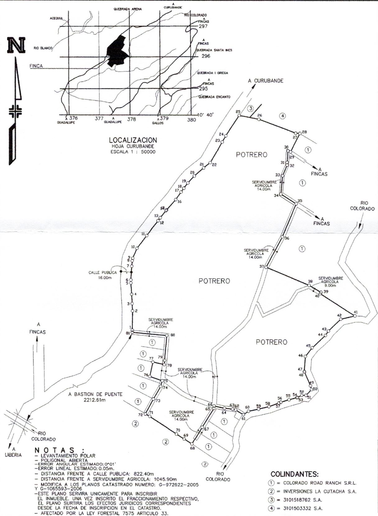 ¡Bienvenidos a Paraíso Río Colorado! Este enorme terreno de casi medio millón de metros cuadrados está bien ubicado en una carretera pavimentada en las afueras de Liberia, camino a Curubandé. Posibilidad de 80 lotes en residencial cerrado u otro tipo de atractivos turísticos. ¡Está bordeado por el río Colorado! Hay un pozo registrado, calles de piedra compactada y algunas infraestructuras eléctricas ya instaladas. Se segregan con título 9 lotes de aproximadamente 5000 metros cuadrados cada uno. No pierda esta oportunidad única de invertir en esta propiedad con una excelente relación calidad-precio.