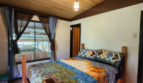 The property has easy two-wheel drive access, a bus stop at the lane’s end, and proximity to Rivas for essentials such as a market, pharmacy, bank machine and butcher’s. Modern comforts include a solar hot water system, DSL internet, landline, and TV service. The upgraded kitchen boasts granite countertops, a 4-burner gas stove, and more. Notable additions include an electric front gate, and a whole-house surge protector. The property includes a greenhouse, storage shed, and a diverse array of fruit trees, plants, and flowers.