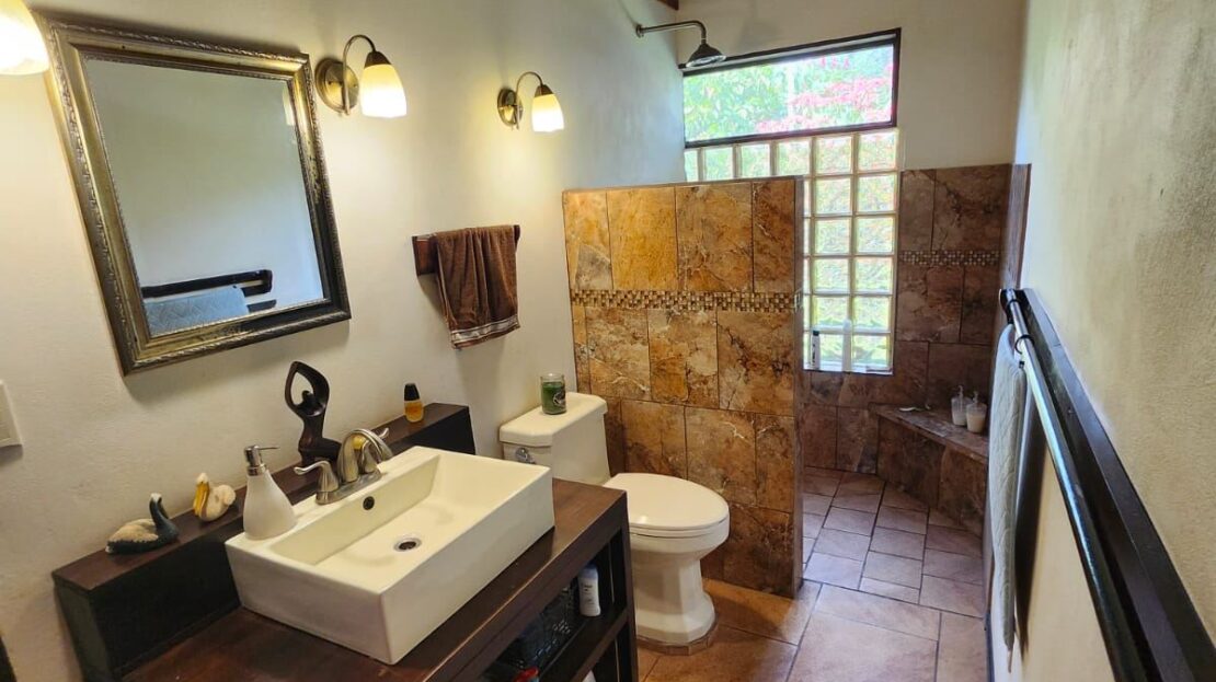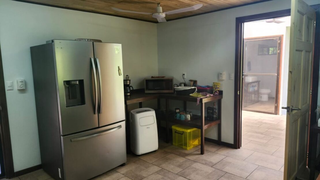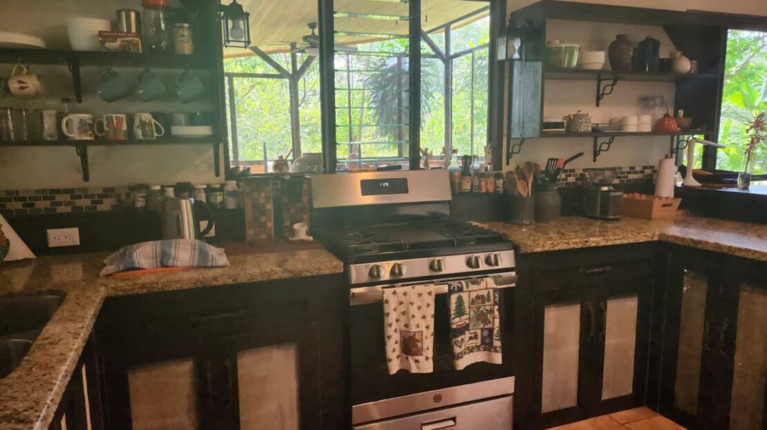 The property has easy two-wheel drive access, a bus stop at the lane’s end, and proximity to Rivas for essentials such as a market, pharmacy, bank machine and butcher’s. Modern comforts include a solar hot water system, DSL internet, landline, and TV service. The upgraded kitchen boasts granite countertops, a 4-burner gas stove, and more. Notable additions include an electric front gate, and a whole-house surge protector. The property includes a greenhouse, storage shed, and a diverse array of fruit trees, plants, and flowers. Enjoy a cup of coffee from beans grown on the property and roasted across the river! Make Casa Jardin your stair-free haven in nature’s embrace. Act now and embrace your retreat in this riverside paradise!