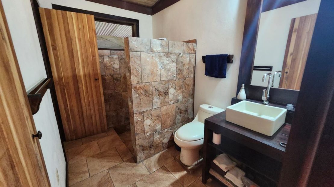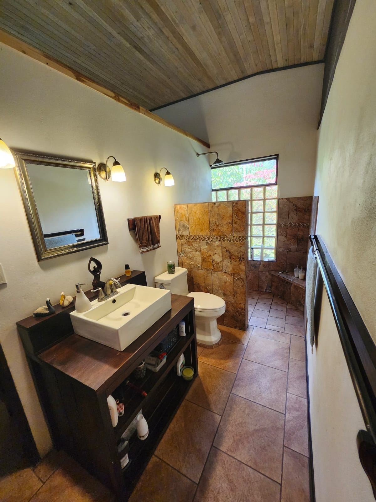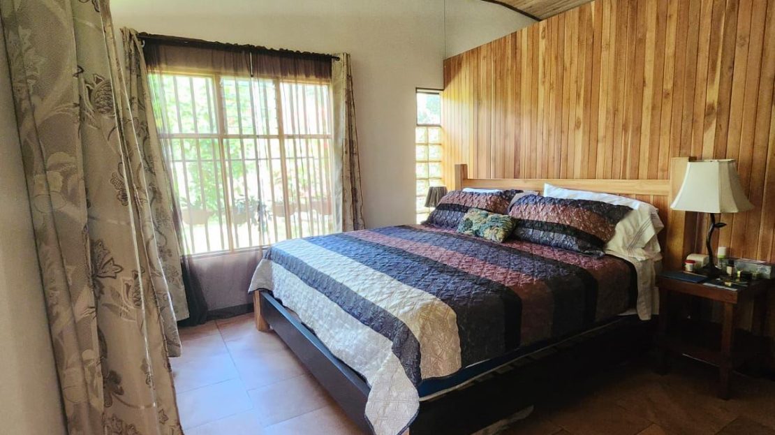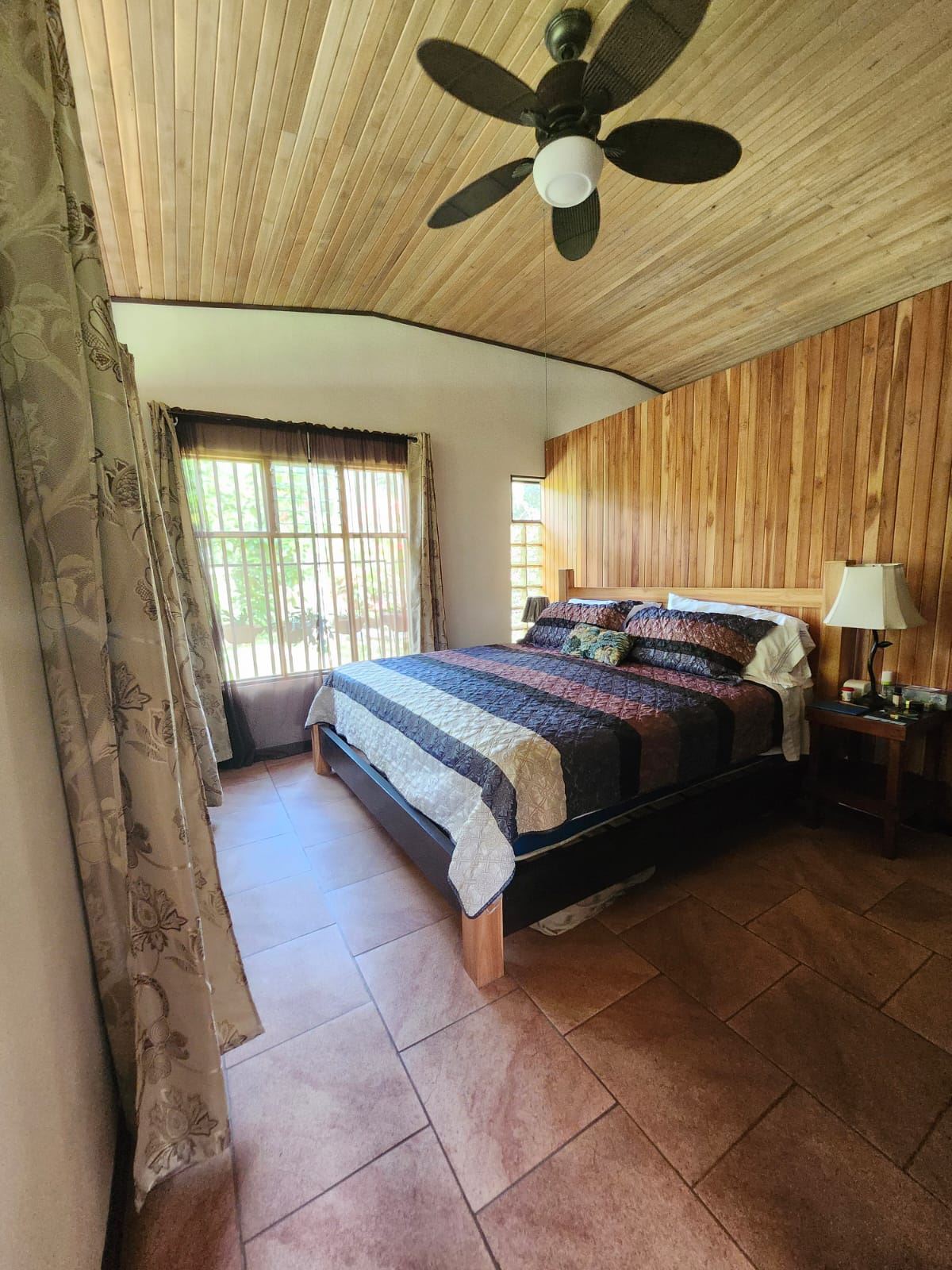 The property has easy two-wheel drive access, a bus stop at the lane’s end, and proximity to Rivas for essentials such as a market, pharmacy, bank machine and butcher’s. Modern comforts include a solar hot water system, DSL internet, landline, and TV service. The upgraded kitchen boasts granite countertops, a 4-burner gas stove, and more. Notable additions include an electric front gate, and a whole-house surge protector. The property includes a greenhouse, storage shed, and a diverse array of fruit trees, plants, and flowers. Enjoy a cup of coffee from beans grown on the property and roasted across the river! Make Casa Jardin your stair-free haven in nature’s embrace. Act now and embrace your retreat in this riverside paradise!