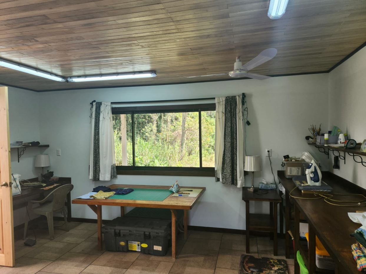 The private access road winds past lush coffee trees and borders a creek with waterfalls. A natural spring water is also born on the property. This botanical haven includes an art studio which can function as a rental unit, carport, and greenhouse and is completely fenced. The studio features a bath, large deck, and scenic views. Fruitful trees like avocados, coffee, mangoes, and more adorn the farm. A dedicated river drive, planted with mango and grapefruit trees, complements the 2-acre property. Embrace the natural symphony on this combined 8,313 sq. meters of blissful retirement living.