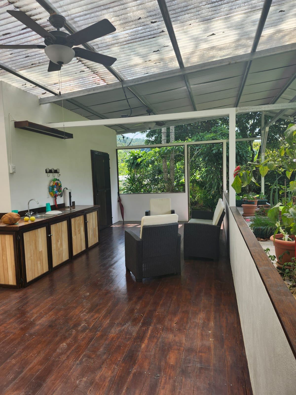 El camino de acceso privado serpentea entre exuberantes árboles de café y bordea un arroyo con cascadas. También nace agua de manantial natural en la propiedad. Este refugio botánico incluye un estudio de arte que puede funcionar como unidad de alquiler, cochera e invernadero, y está completamente cercado. El estudio cuenta con un baño, una gran terraza y vistas panorámicas. Árboles frutales como aguacates, café, mangos y más adornan la finca. Un camino dedicado al río, plantado con árboles de mango y toronja, complementa la propiedad de 2 acres. Abraza la sinfonía natural en estos combinados 8,313 metros cuadrados de vida jubilosa y dichosa.
