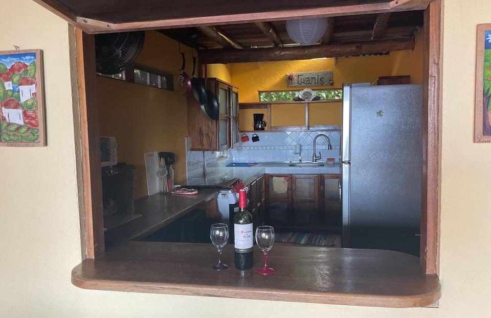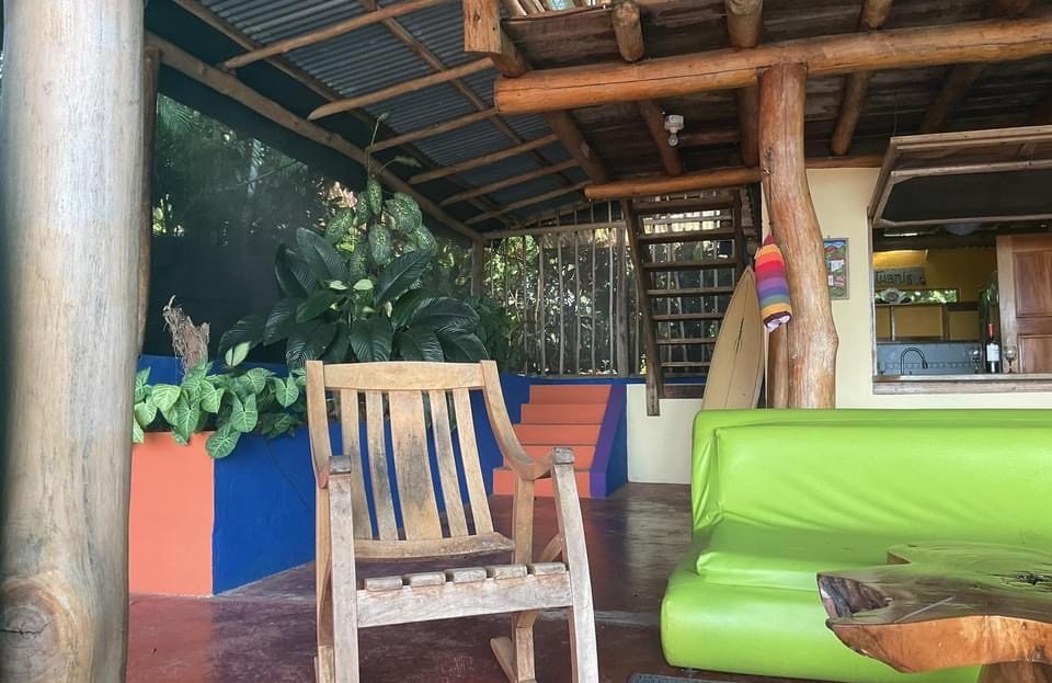 Inside, you’ll find an enclosed kitchen, bathroom, and bedrooms, ensuring privacy and convenience. The open-air living space with a pool invites you to relax and enjoy the tropical surroundings. The Rancho exudes a funky, old-style Costa Rican charm, yet it’s equipped with fiber optic internet for modern connectivity.