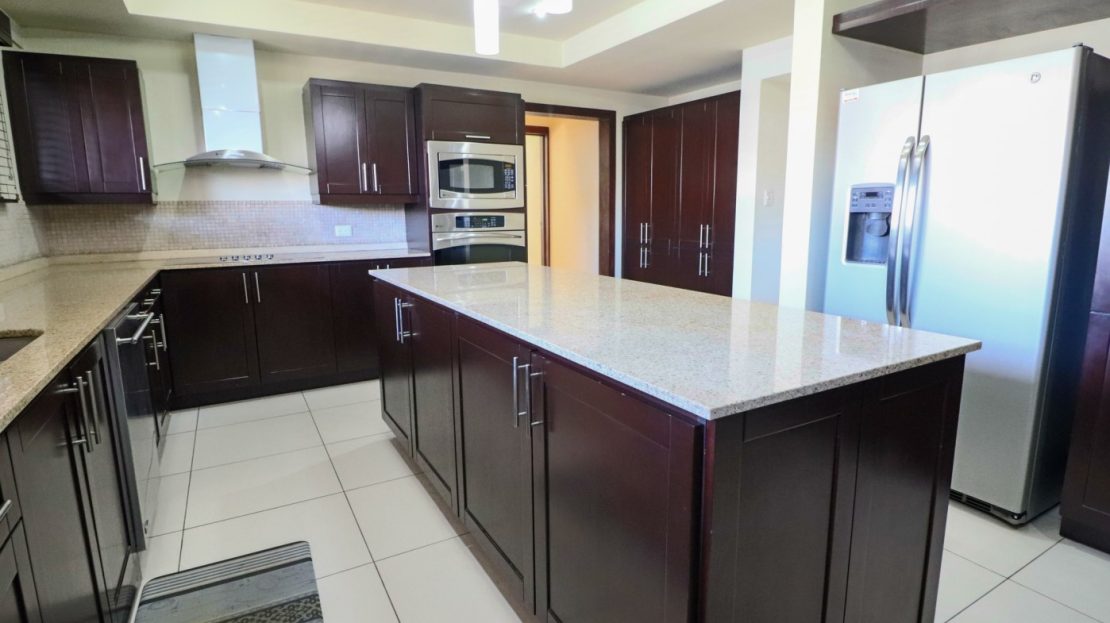 Una amplia y funcional cocina, equipada con electrodomésticos modernos y amplio espacio de almacenamiento.