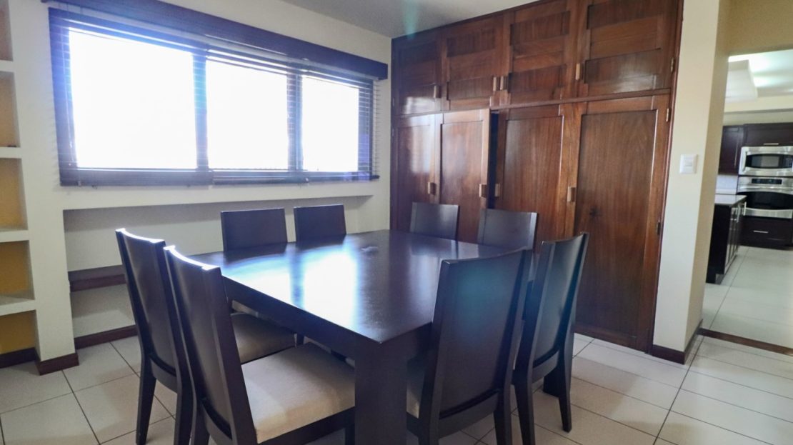 Un generoso comedor con capacidad para hasta 12 personas, perfecto para celebrar reuniones y eventos.