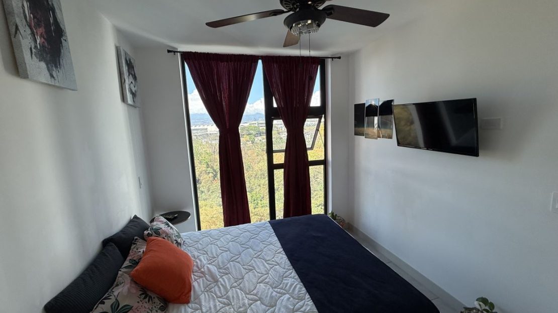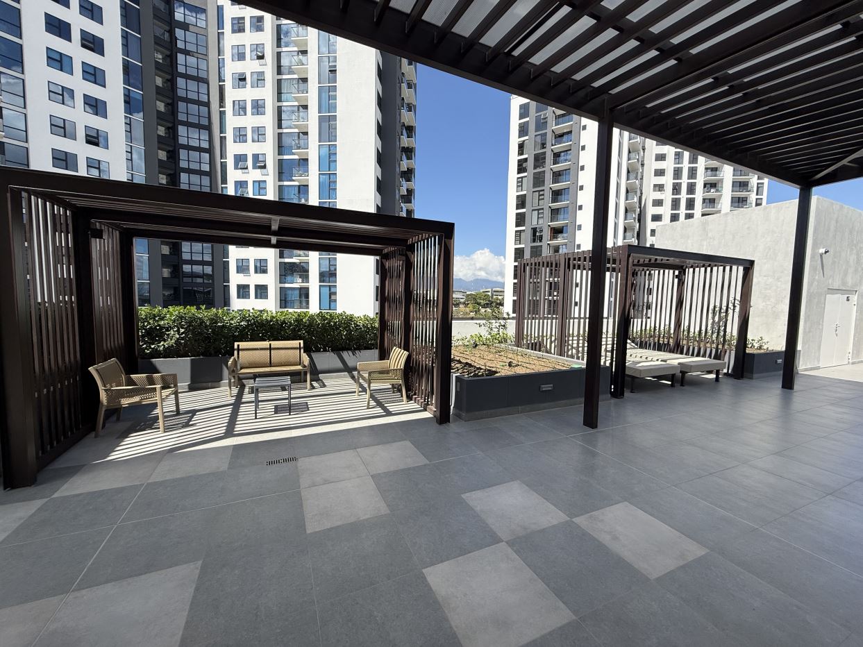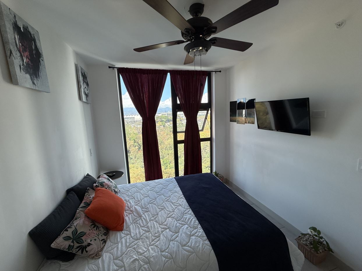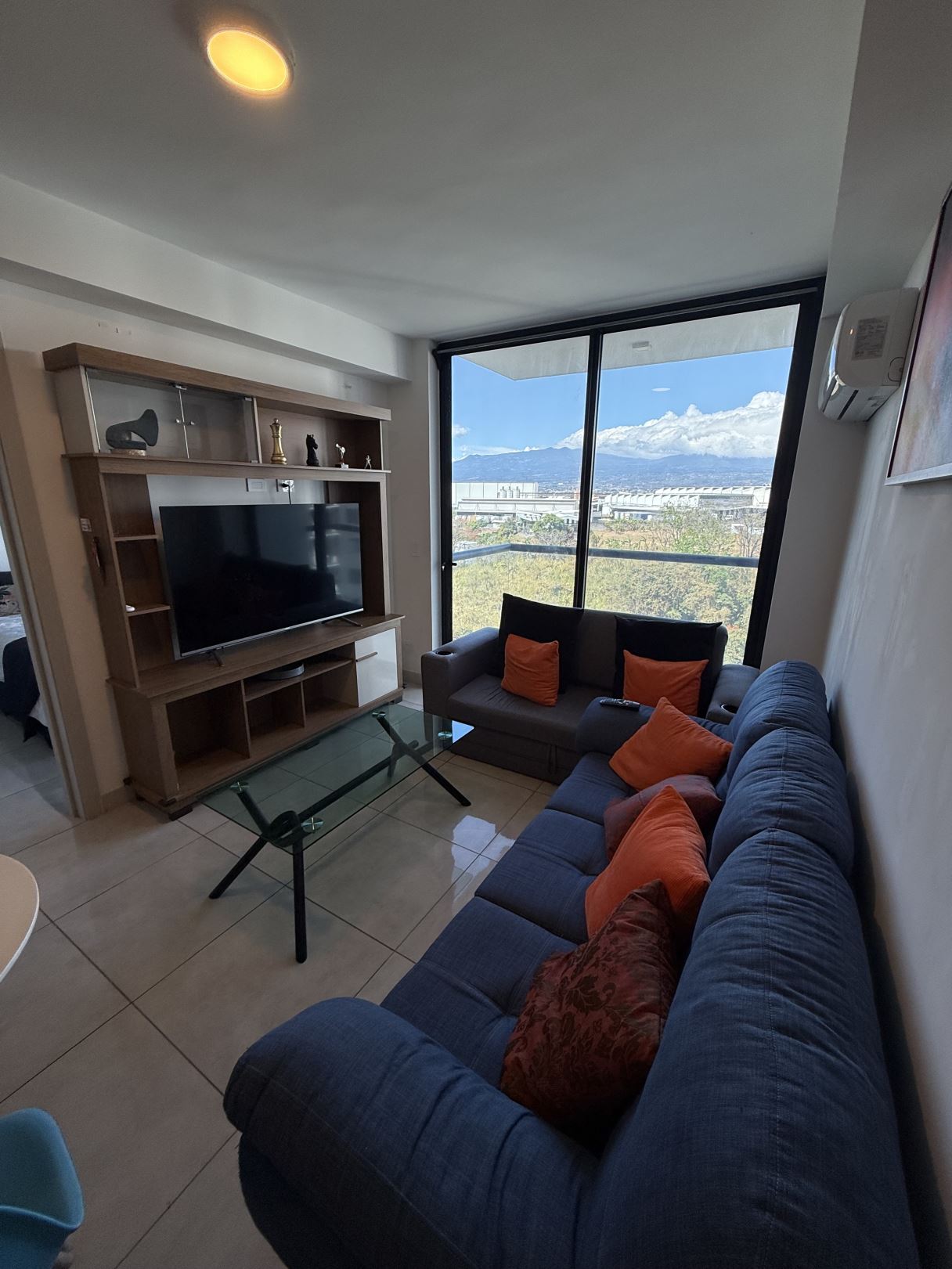 Apartment for rent in Núcleo Sabana Floor # 11 48m²Rent: $1,300 (Equivalent deposit) Furnished. Includes: Condo fee, services and Internet.1 Bedroom | 1 Bathroom | 1 Indoor parking with storageIt has: Refrigerator, oven, microwave, washing tower, windows with solar protection, temperature and acoustic reduction, as well as bed, sofa, dining table and television screen.Quartz kitchen countertop, porcelain floor.Pets accepted-Close to downtown San José and easy access to the highway.-Modern, with balcony and incredible view.-Just 25 minutes from the airport.