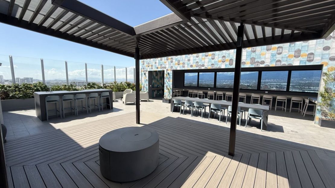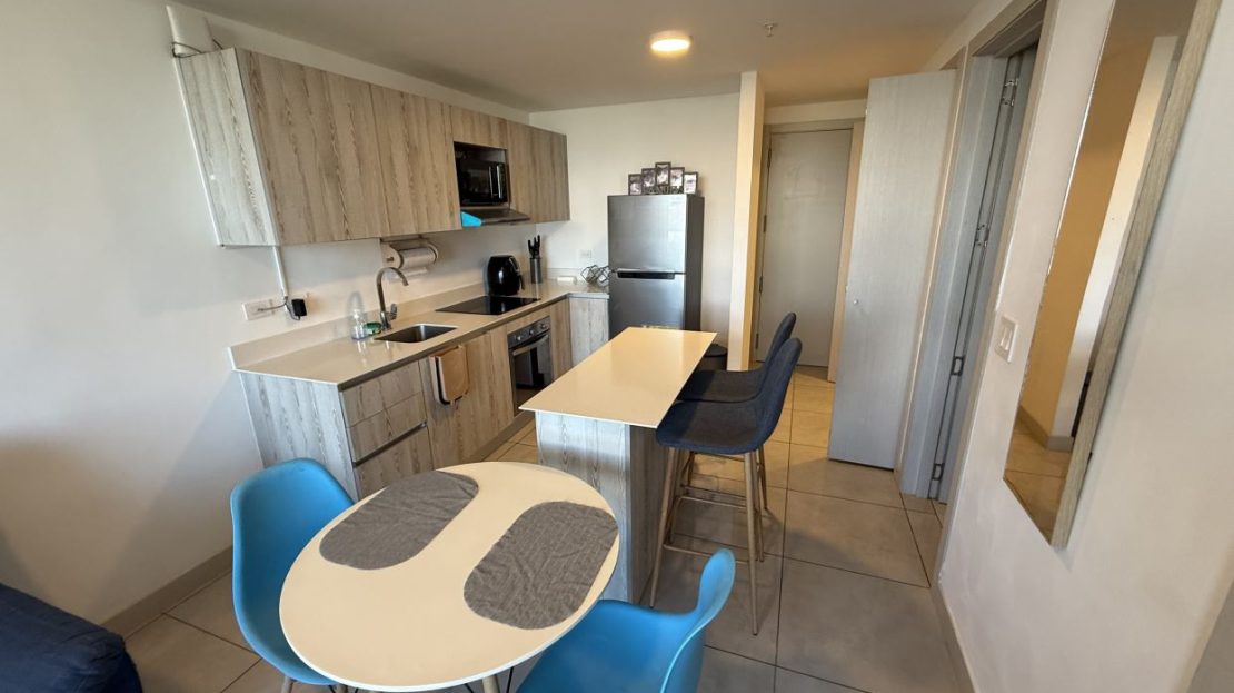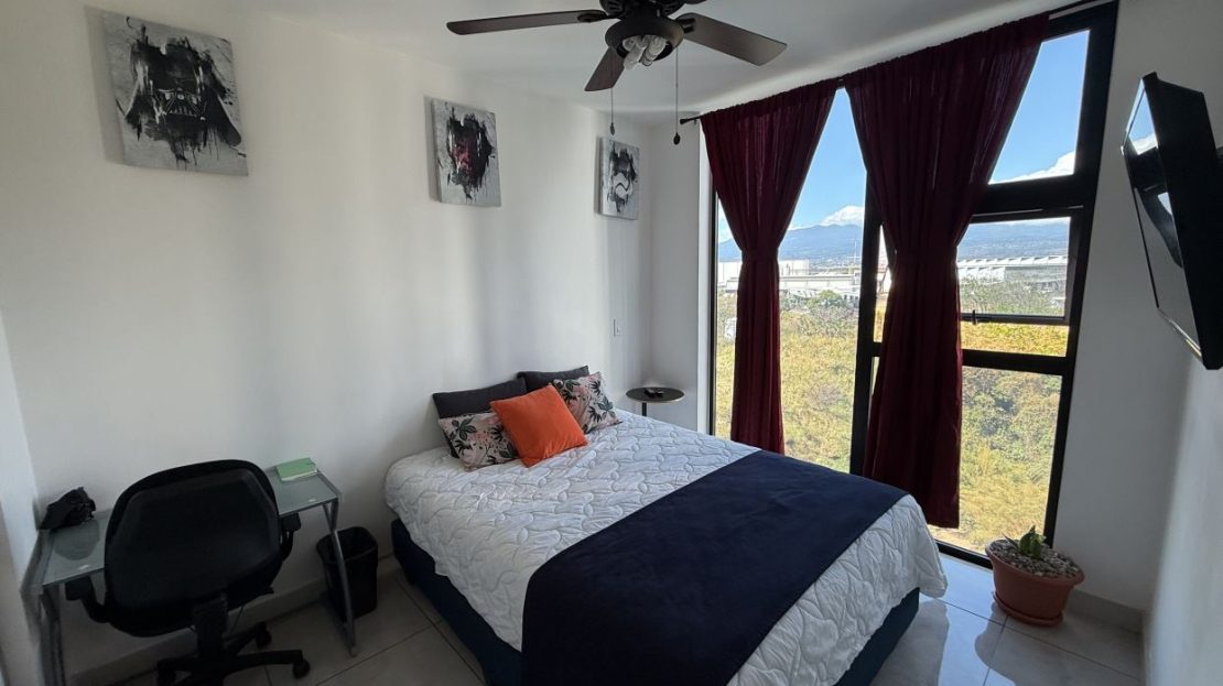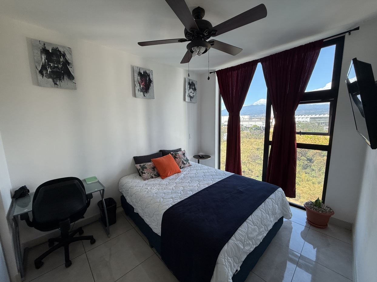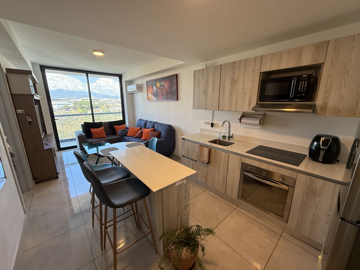 Apartment for rent in Núcleo Sabana Floor # 11 48m²Rent: $1,300 (Equivalent deposit) Furnished. Includes: Condo fee, services and Internet.1 Bedroom | 1 Bathroom | 1 Indoor parking with storageIt has: Refrigerator, oven, microwave, washing tower, windows with solar protection, temperature and acoustic reduction, as well as bed, sofa, dining table and television screen.Quartz kitchen countertop, porcelain floor.Pets accepted-Close to downtown San José and easy access to the highway.-Modern, with balcony and incredible view.-Just 25 minutes from the airport.