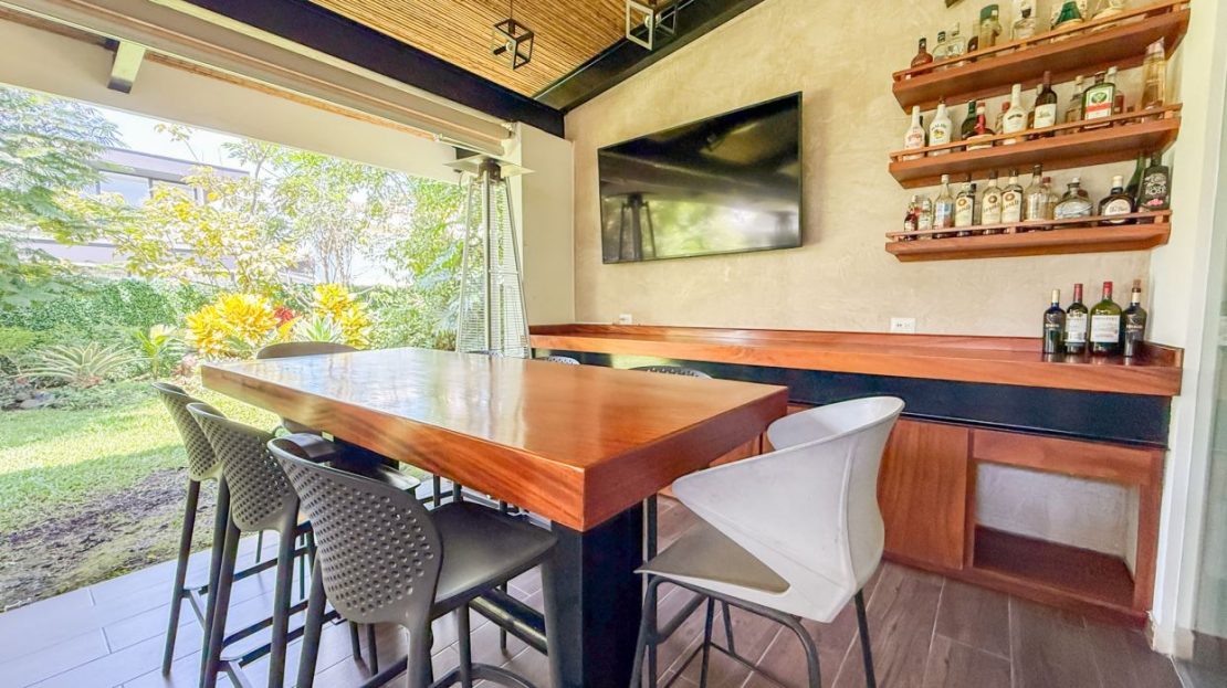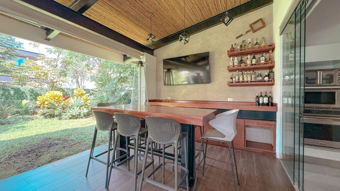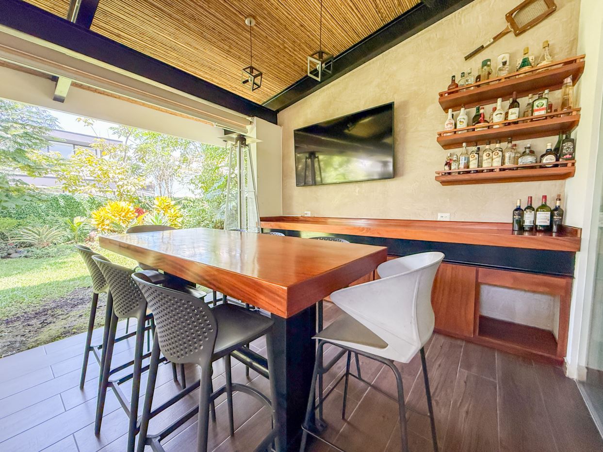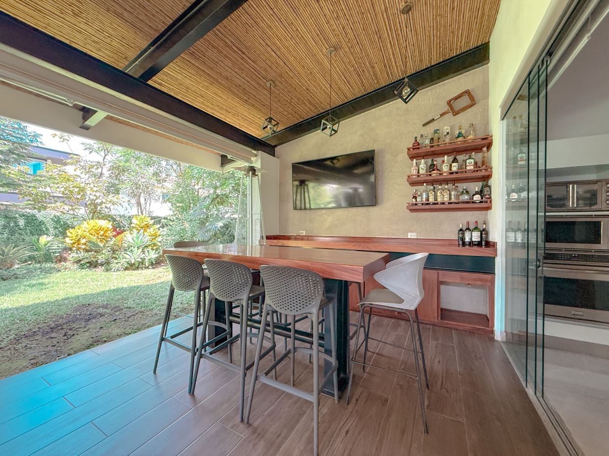 Terraza amplia con bar y mueble de madera