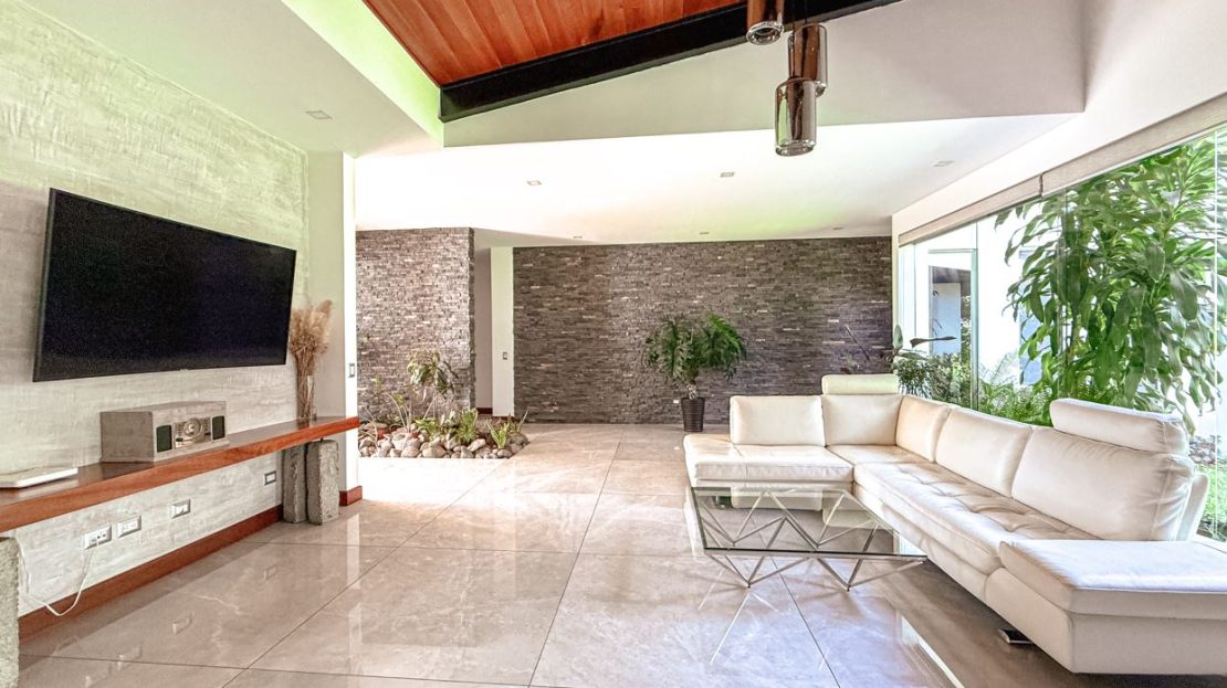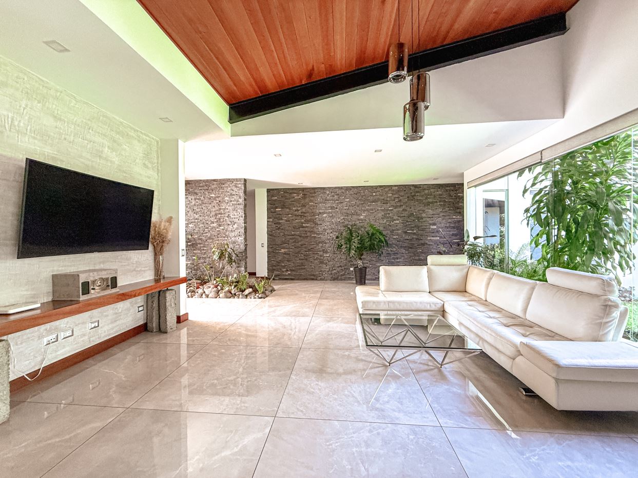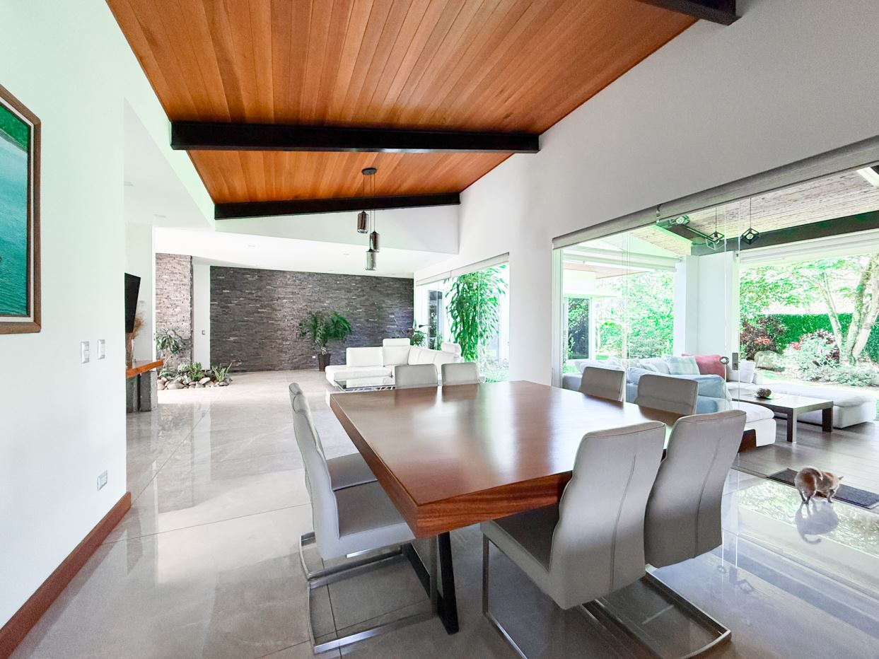 Beautiful single-level residence with a contemporary design that combines spaciousness, comfort, and excellent natural lighting. Located in one of the most exclusive residential communities in western San José, this property offers integrated and functional spaces ideal for family living.
