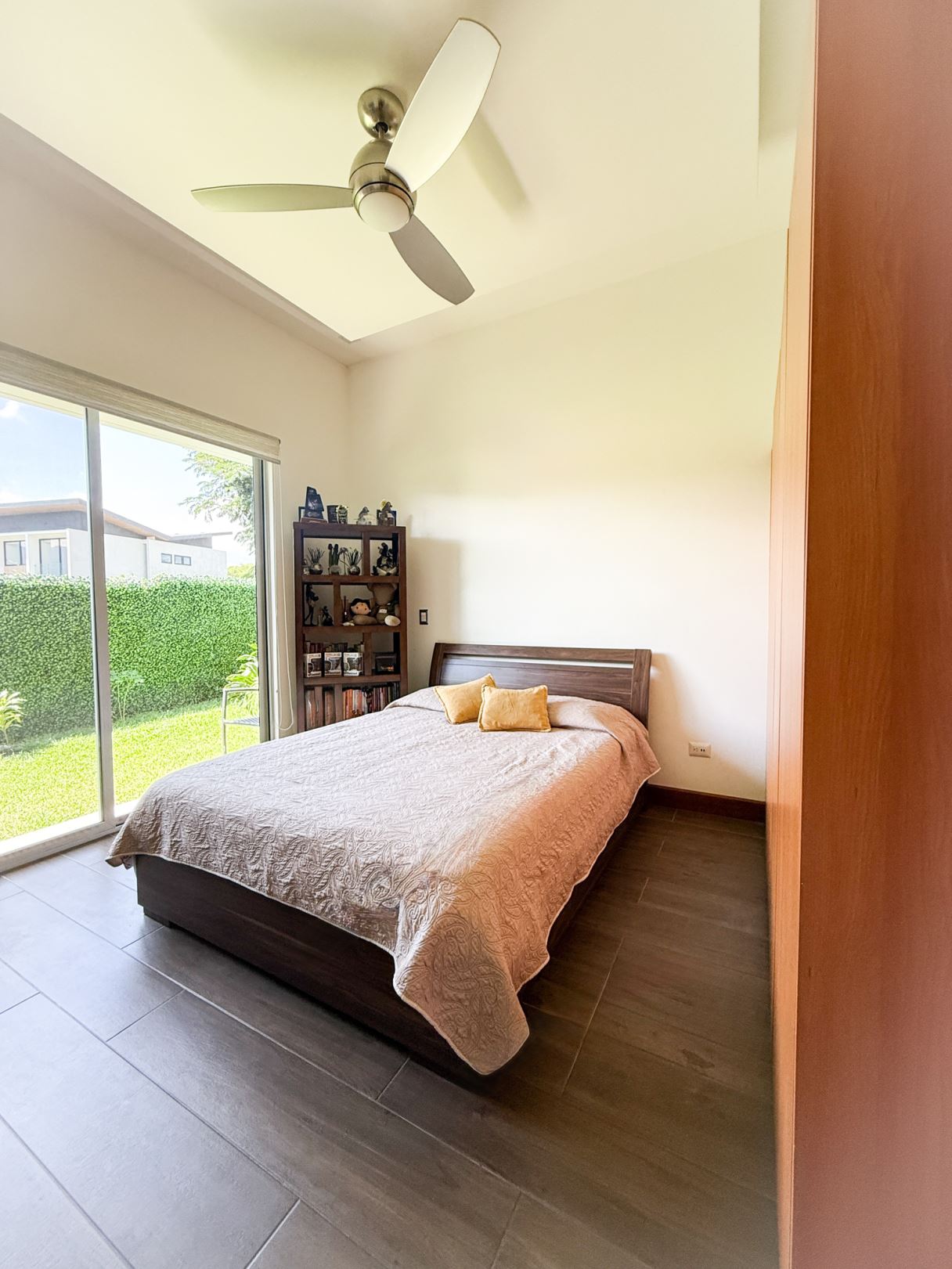 Master suite with direct garden access, walk-in closet, and full bathroom