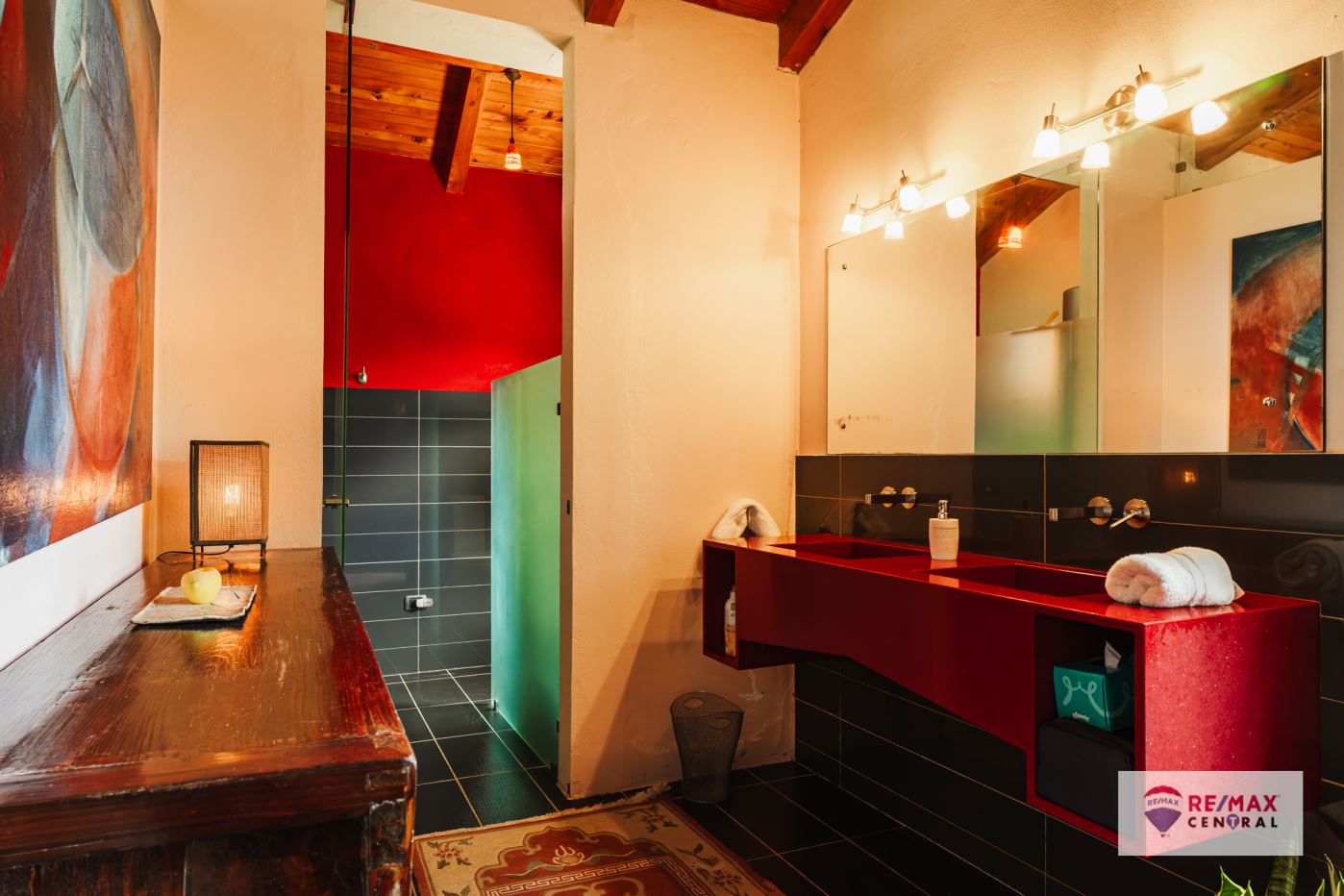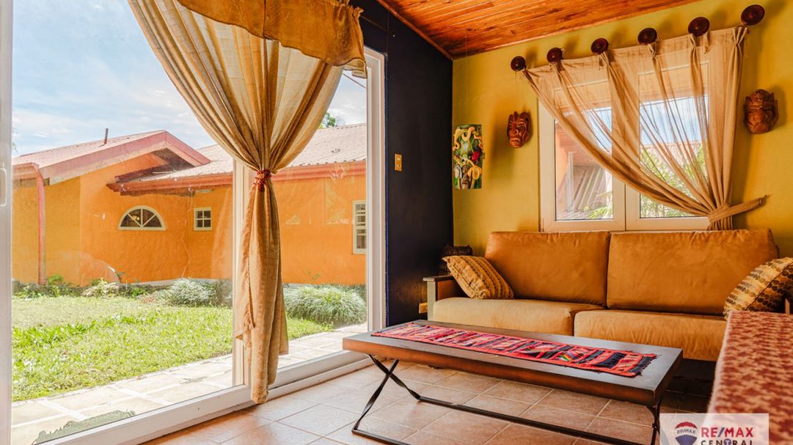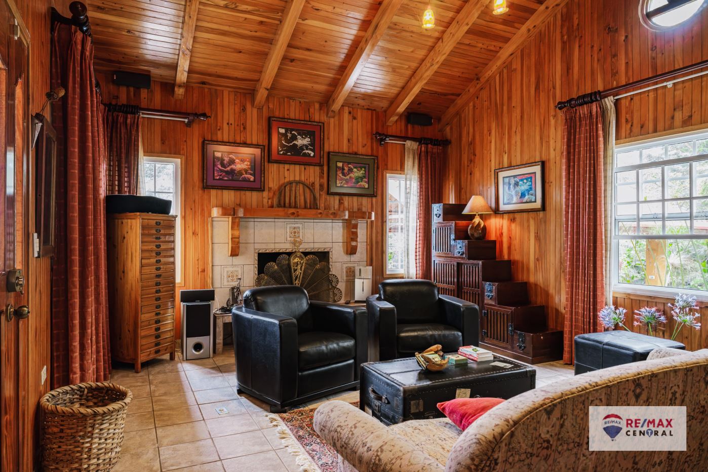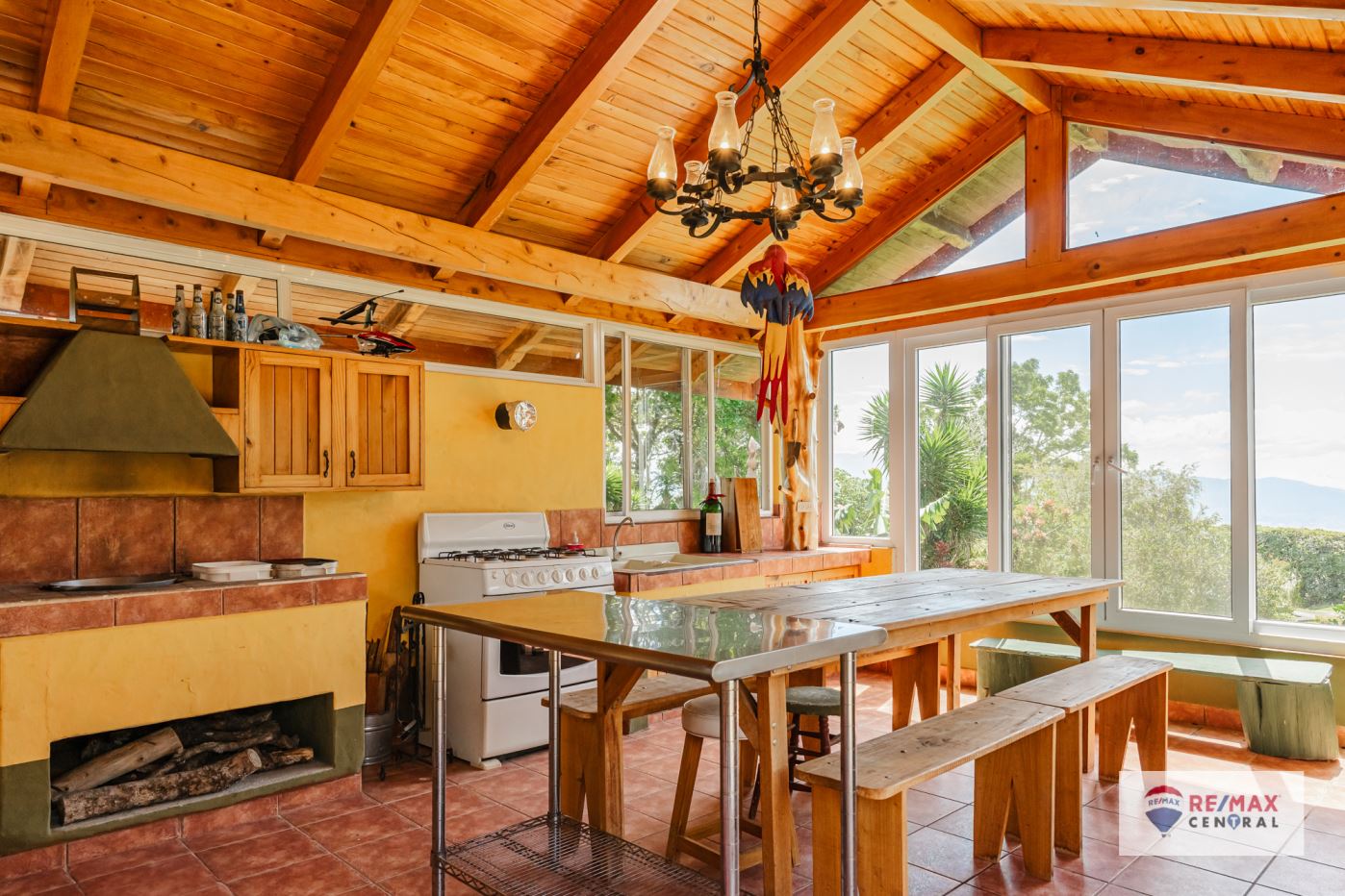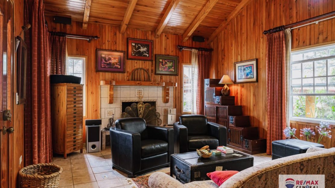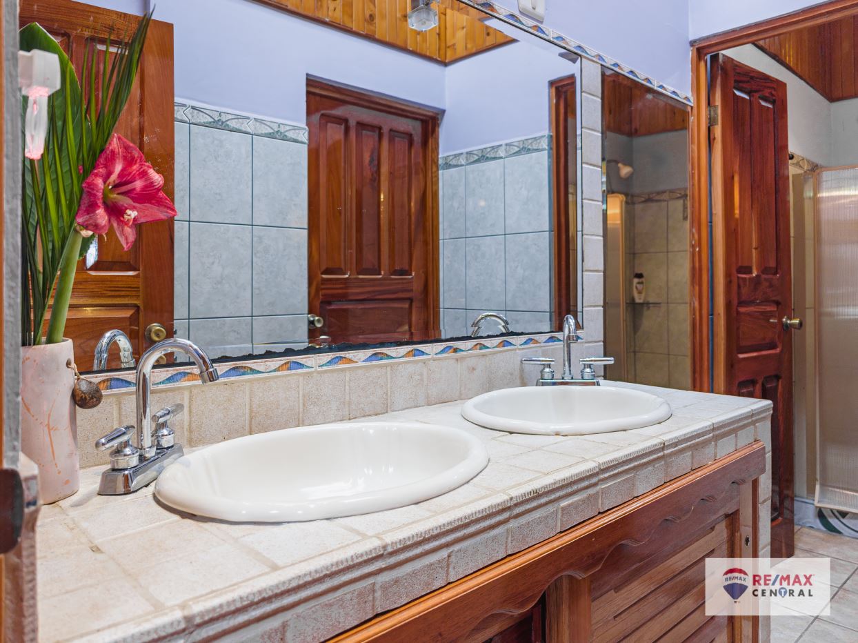 La casa posee un encantador estilo costarricense con interiores bellamente elaborados en madera nativa. La amplia sala de estar tiene techos altos, ventanas con vistas y una acogedora chimenea. El comedor cuenta con un techo abovedado y puertas de vidrio que se abren a una impresionante área de jardín. La moderna cocina campestre está diseñada a medida con numerosos gabinetes de madera nativa, barra de desayuno, techo abovedado y grandes ventanas panorámicas para disfrutar de las vistas de la naturaleza. La primera habitación de invitados es una suite con techos abovedados y ventanas clásicas con vistas a la naturaleza. El baño completo, diseñado a medida, es moderno con lavabos dobles. La segunda habitación puede servir como oficina o área recreativa. La excepcional habitación principal está bien diseñada con techos altos abovedados, ventanas grandes con vistas a la naturaleza, chimenea y suelo de cerámica con diseño de madera. El baño principal contemporáneo es espectacular con diseño a medida, lavabos dobles, ducha privada única y gabinetes de diseño. El vestidor es sobresaliente con secciones modernas para ropa en ambos lados y iluminación de diseñador. Hay un área separada para lavandería y almacenamiento. El patio cubierto al frente abarca el estilo de vida natural, ideal para el desayuno o una bebida al atardecer, mientras se disfrutan las excelentes vistas y atardeceres.