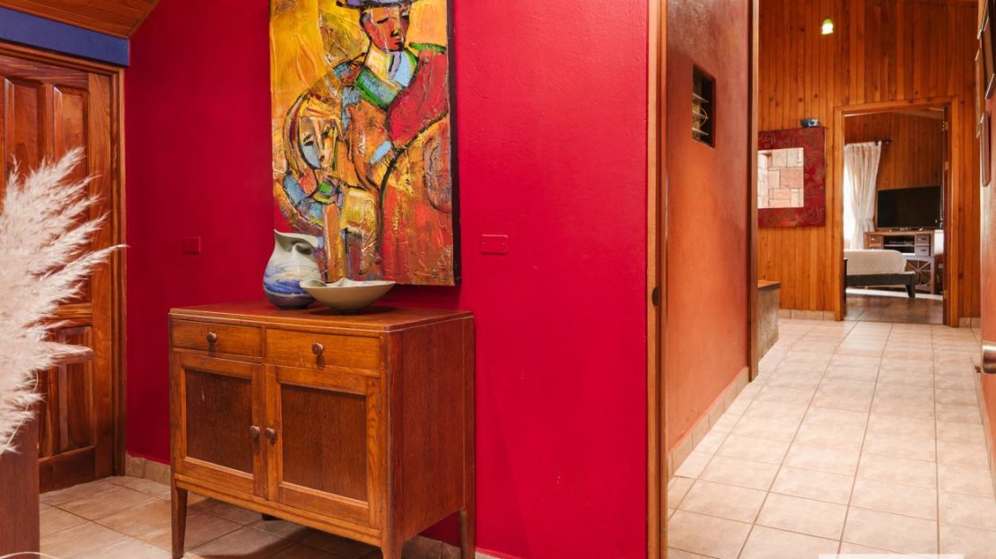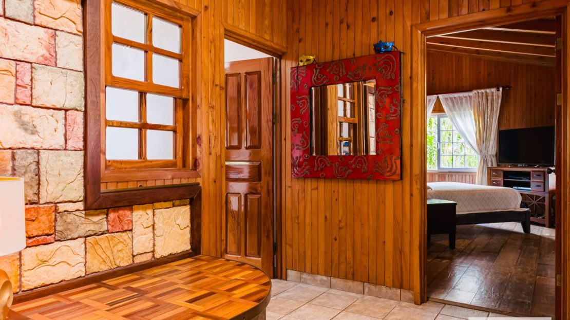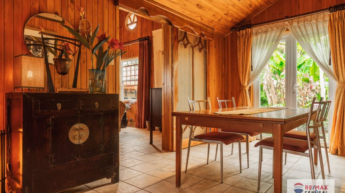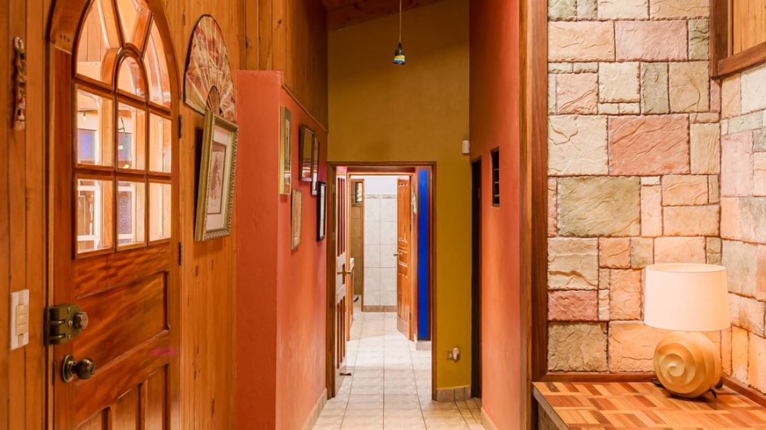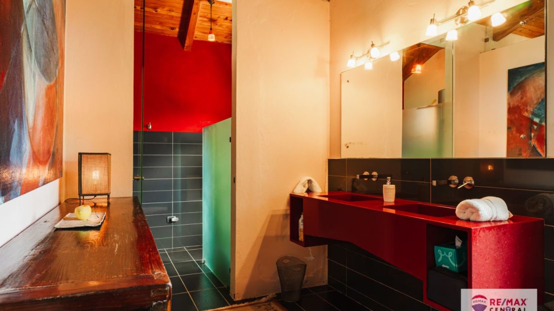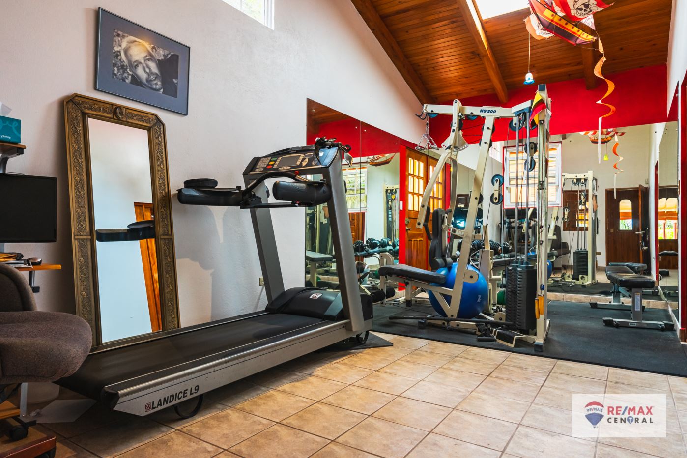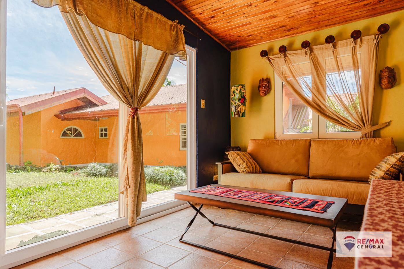 La casa posee un encantador estilo costarricense con interiores bellamente elaborados en madera nativa. La amplia sala de estar tiene techos altos, ventanas con vistas y una acogedora chimenea. El comedor cuenta con un techo abovedado y puertas de vidrio que se abren a una impresionante área de jardín. La moderna cocina campestre está diseñada a medida con numerosos gabinetes de madera nativa, barra de desayuno, techo abovedado y grandes ventanas panorámicas para disfrutar de las vistas de la naturaleza. La primera habitación de invitados es una suite con techos abovedados y ventanas clásicas con vistas a la naturaleza. El baño completo, diseñado a medida, es moderno con lavabos dobles. La segunda habitación puede servir como oficina o área recreativa. La excepcional habitación principal está bien diseñada con techos altos abovedados, ventanas grandes con vistas a la naturaleza, chimenea y suelo de cerámica con diseño de madera. El baño principal contemporáneo es espectacular con diseño a medida, lavabos dobles, ducha privada única y gabinetes de diseño. El vestidor es sobresaliente con secciones modernas para ropa en ambos lados y iluminación de diseñador. Hay un área separada para lavandería y almacenamiento. El patio cubierto al frente abarca el estilo de vida natural, ideal para el desayuno o una bebida al atardecer, mientras se disfrutan las excelentes vistas y atardeceres.