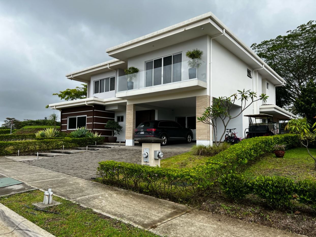 ? Detalles de la propiedad* Casa esquinera de 2 niveles* 430 m² de construcción* 610 m² de lote* 5 habitaciones amplias + cuarto de servicio con baño completo * 6.5 baños (ducha y jacuzzi separados) * 2 walk-in closets* A/C en toda la casa * Parqueo para 4 vehículos* Cocina de lujo con sobres en granito, línea blanca incluida * Sala principal, comedor, sala de TV y oficina* Balcón y terraza techada * Bodega* Jardines con sistema de riego por goteo* Seguridad 24/7