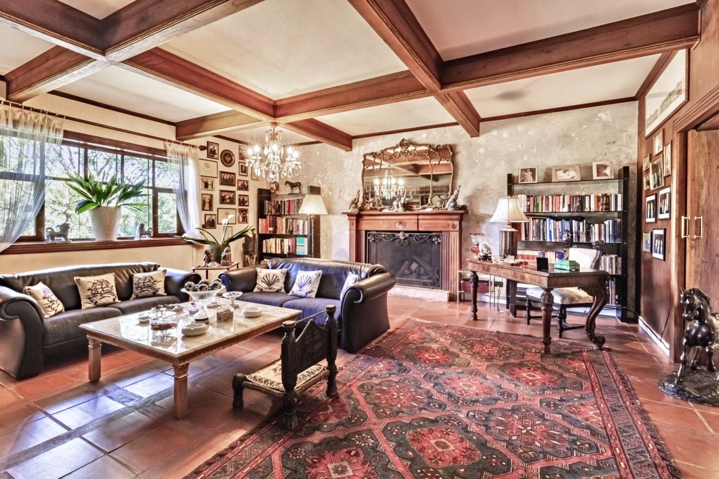 INTERIOR FINISHES: •Solid wood floors and beams.•Fireplace•Built in Wood Cabinets•Designer Victorian Lighting• Wood ceiling dispersing over entire home line patio. Venetian Oasis Estate has 2 entrances. A south and north entrance. An useful distribution for large events or security.