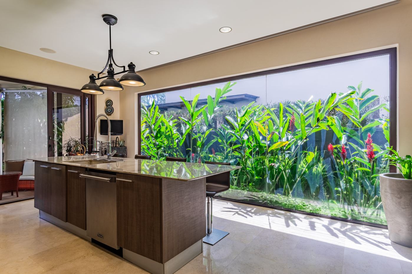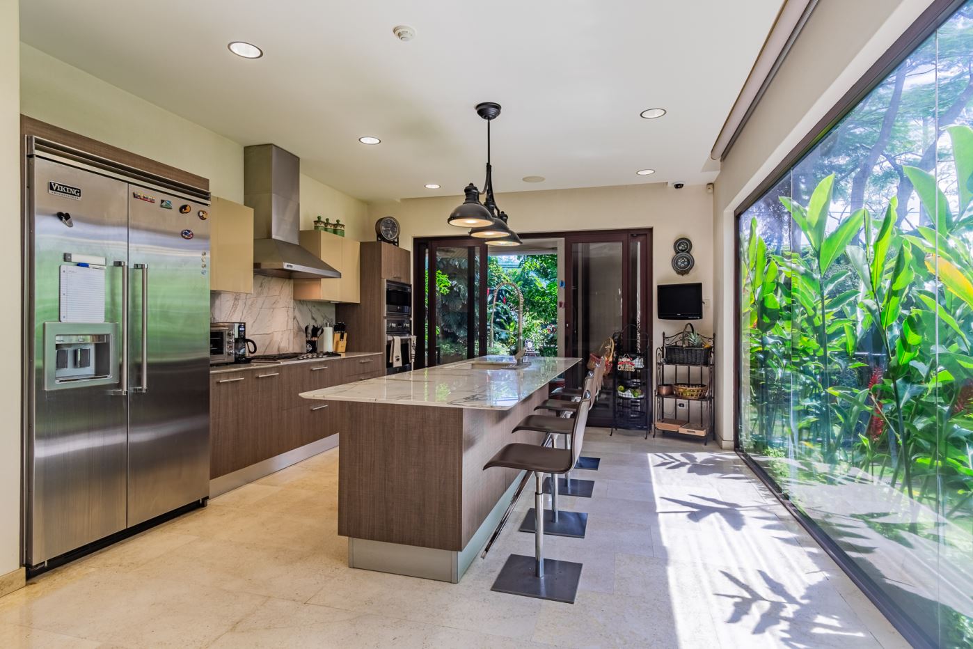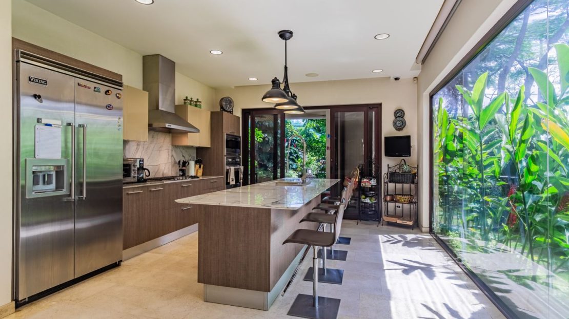 • Cocina gourmet con isla central, sobres de mármol y amplia alacena