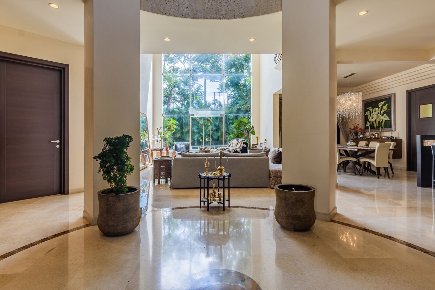A majestic foyer opens into spacious social areas filled with natural light and adorned with marble finishes that enhance the beauty of each environment.