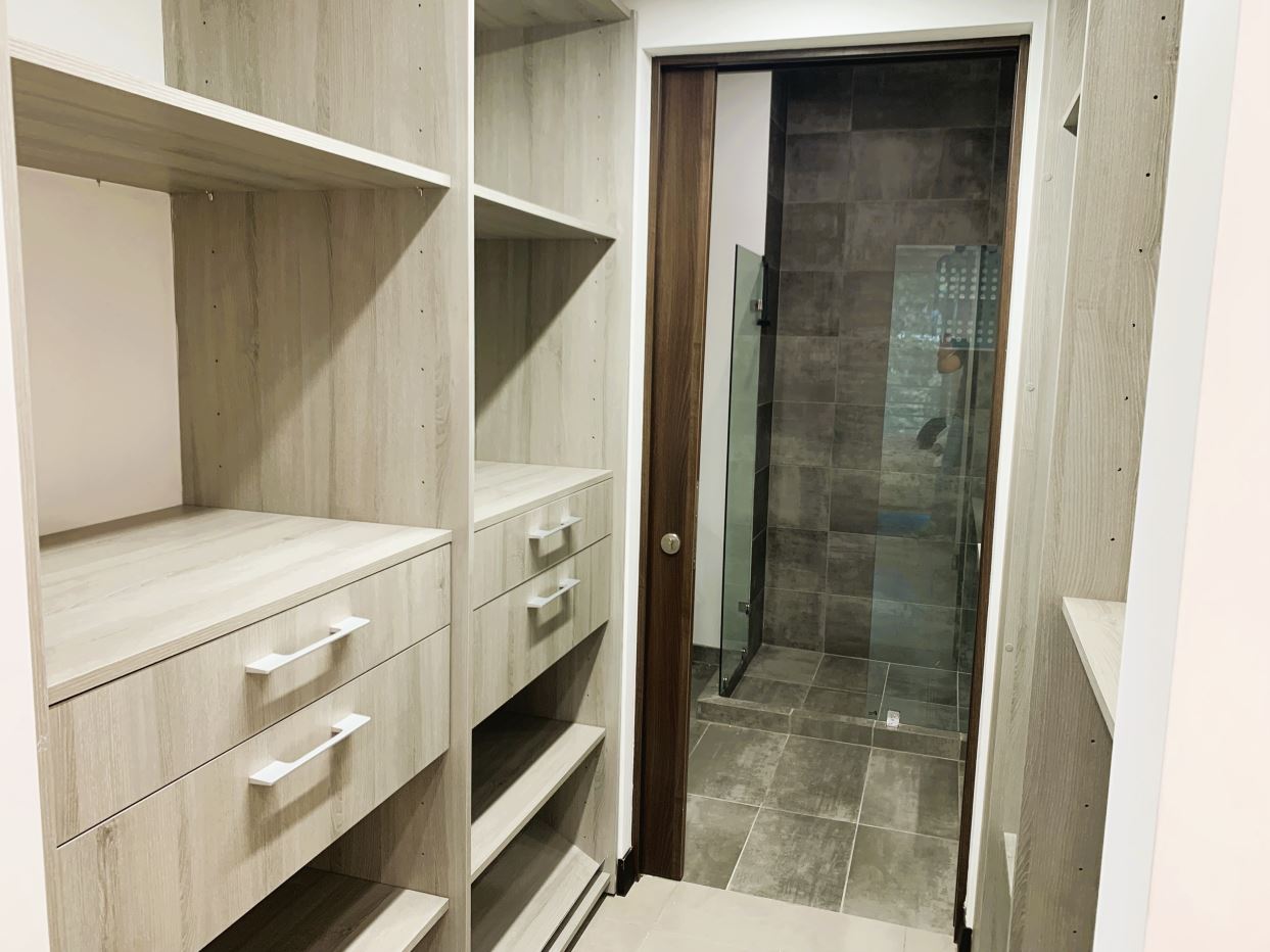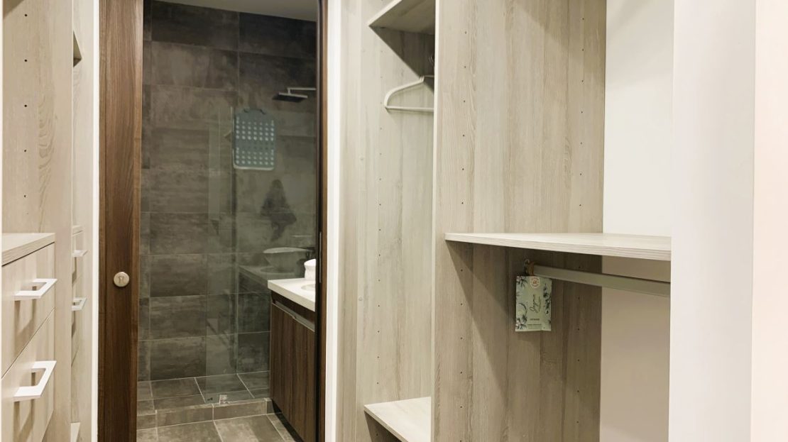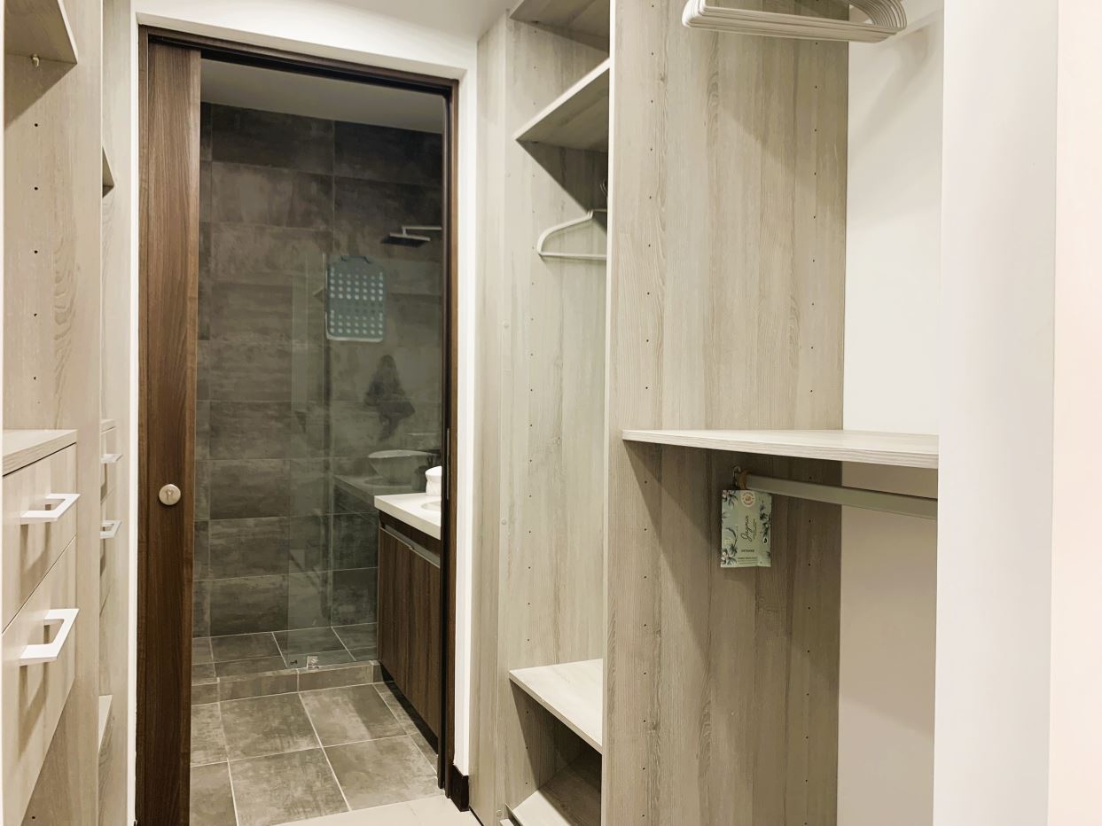 Habitación amplia con cama King y walk-in closet.