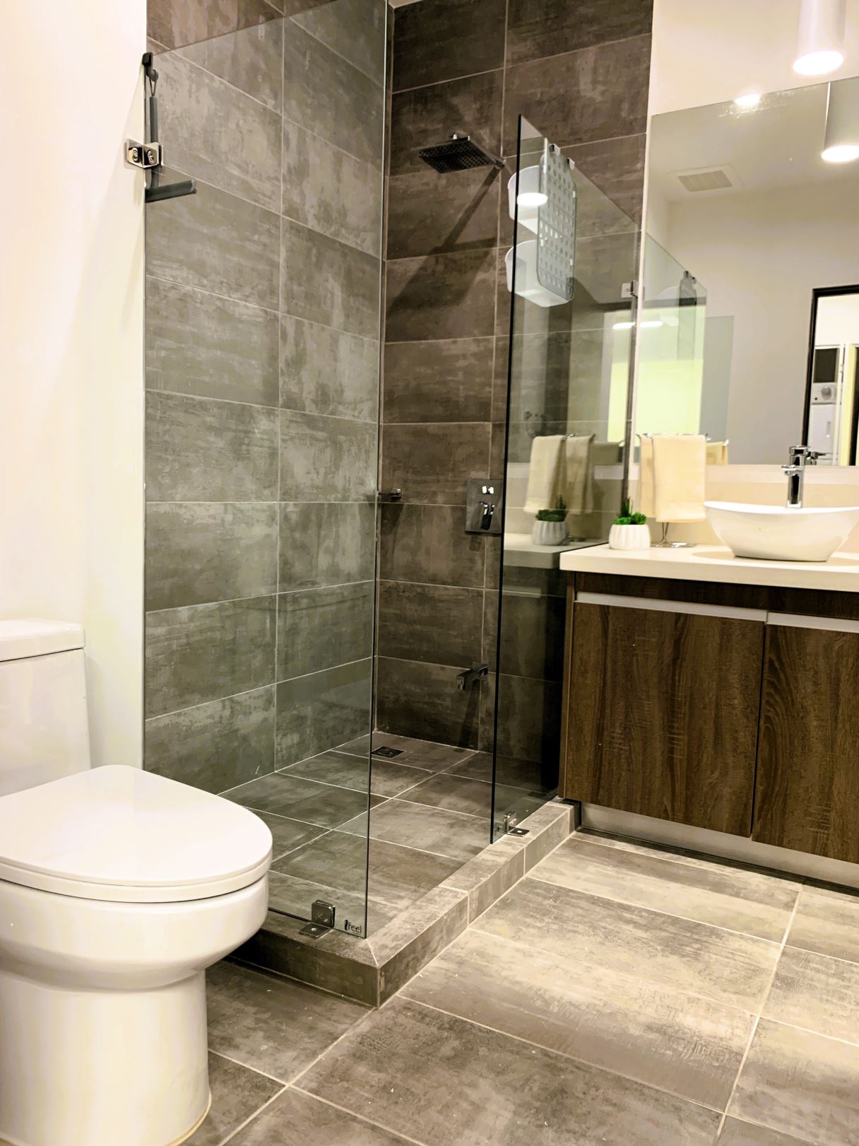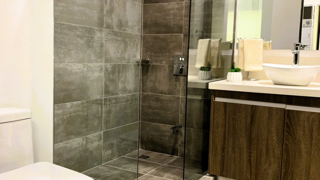 Baño completo moderno y elegante.