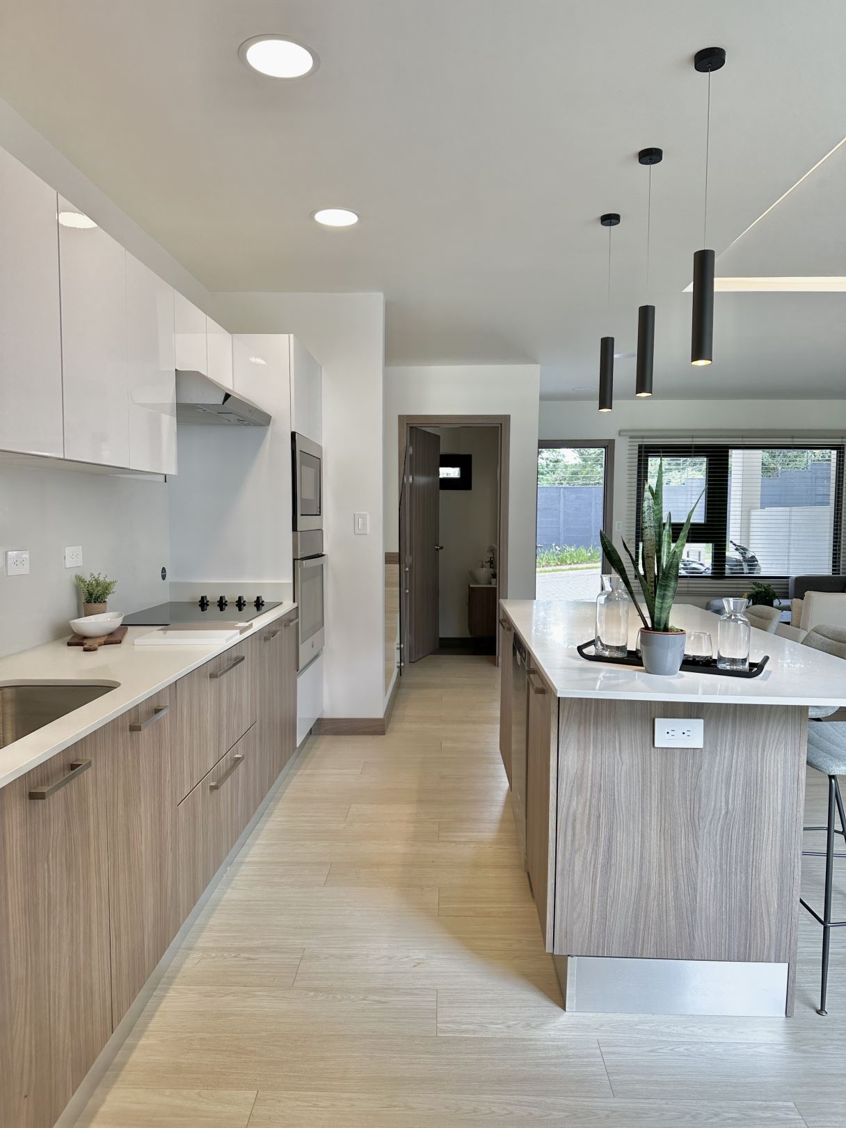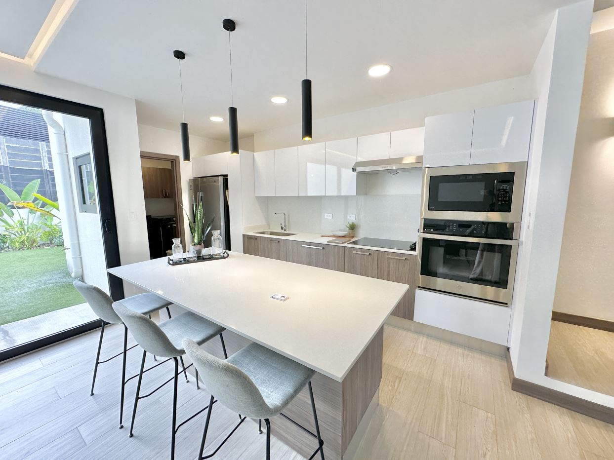 • 180 m² de construcción• 3 habitaciones amplias• 2.5 baños• Sala y cocina integradas con cocina empotrada y horno• Jardín privado• Bodega• Cochera para 2 vehículos• Espacio adicional en segunda planta: ideal como sala de TV, oficina o segunda sala• Acabados de lujo: pisos de alta calidad, muebles de cocina italianos• Excelente iluminación natural y diseño espaciosoAmenidades del condominio:• Piscinas• Parques infantiles y parques para mascotas• Canchas multiusos y gimnasio• Senderos y áreas verdes• Anfiteatro• Espacio de co-working• Seguridad 24/7