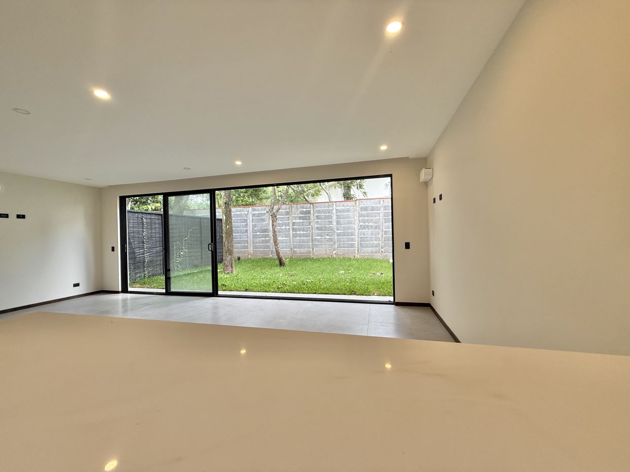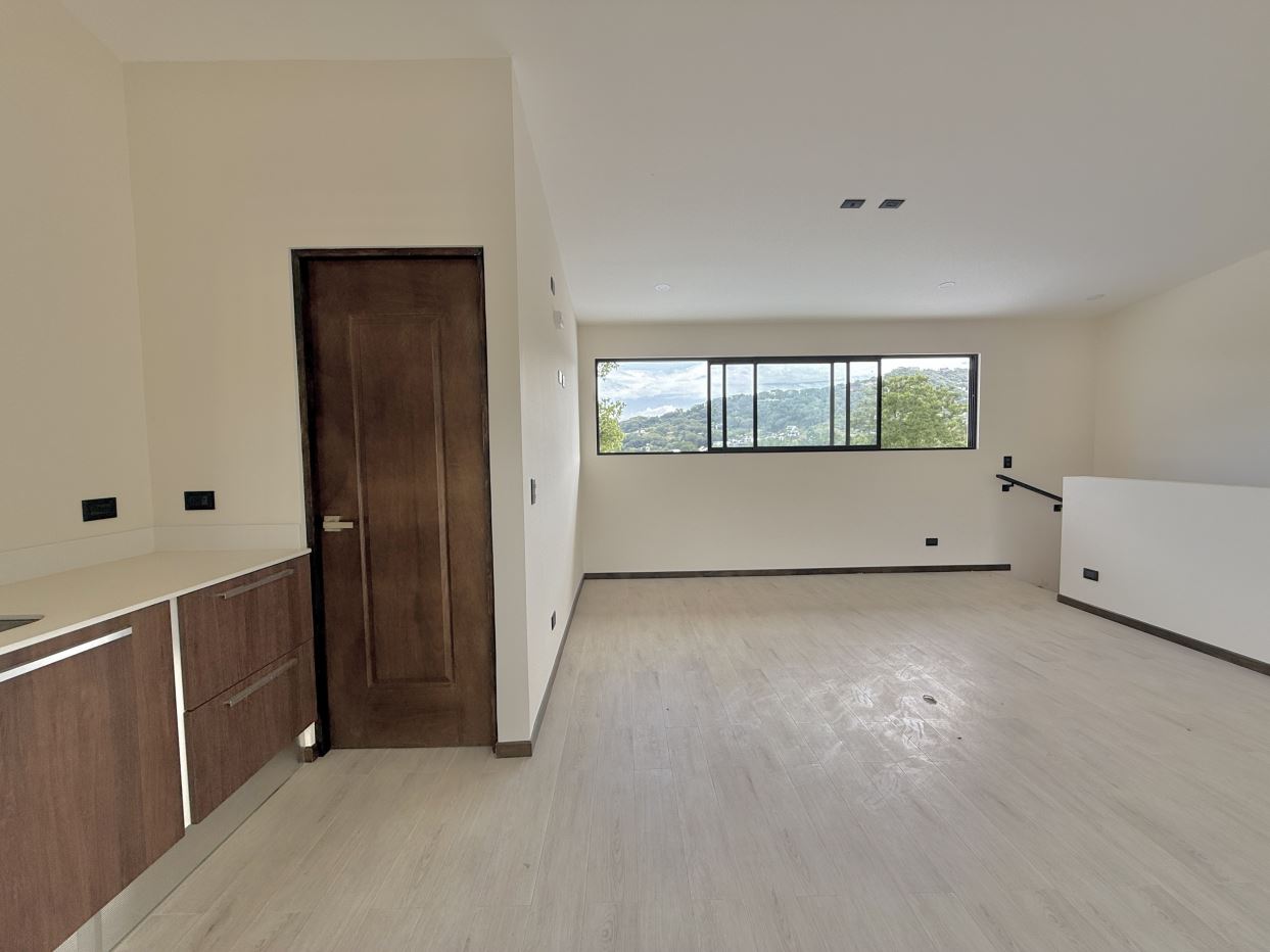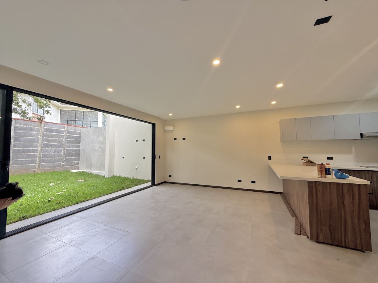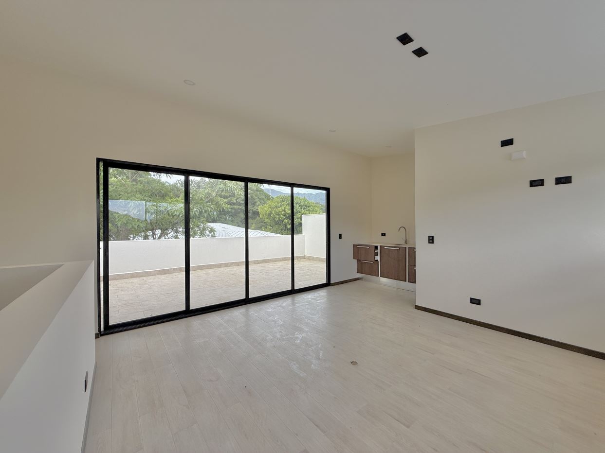 Distribución de la casa:• 3 habitaciones + 1 habitación adicional en el tercer piso con mini cocina• 3.5 baños (baño completo en la habitación del tercer piso)• Amplia sala, comedor y cocina integrada con línea blanca incluida• Terraza grande con vista espectacular a las montañas• Área de lavandería independiente• Ventanas corredizas y gran iluminación natural• Amplio jardín privado• Previsiones para aire acondicionado en sala y habitaciones• Parqueo para 2 vehículos