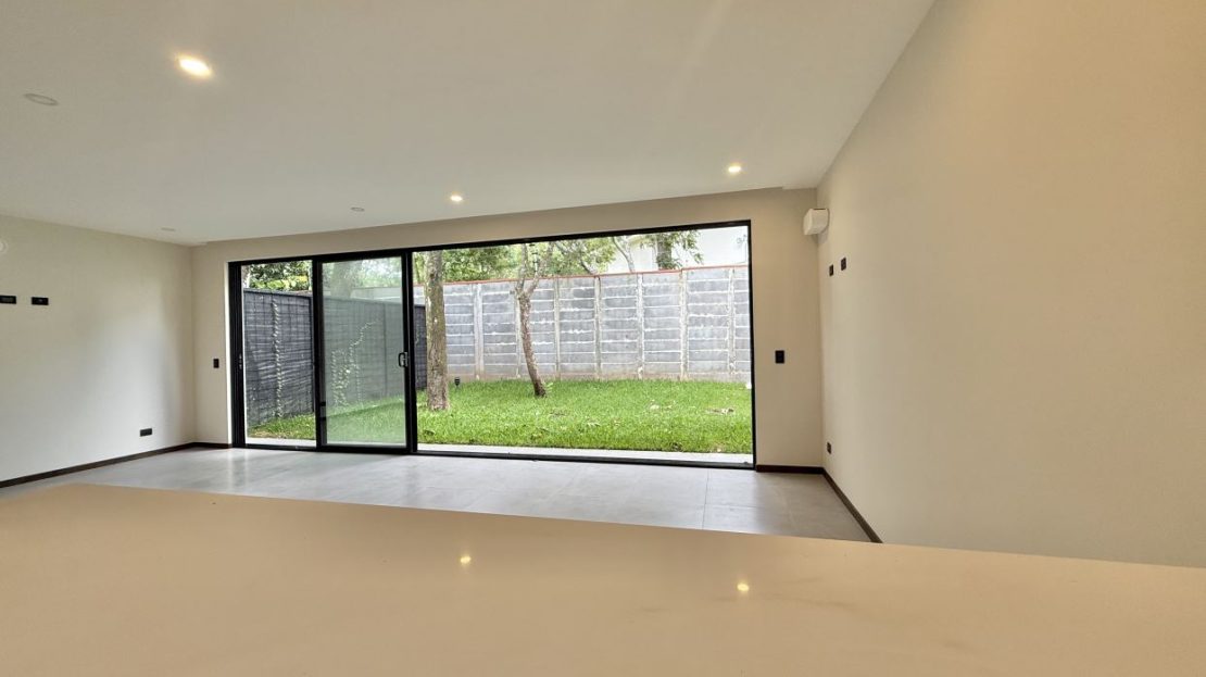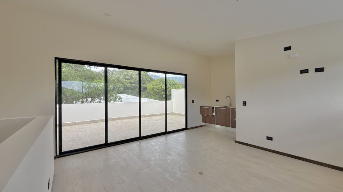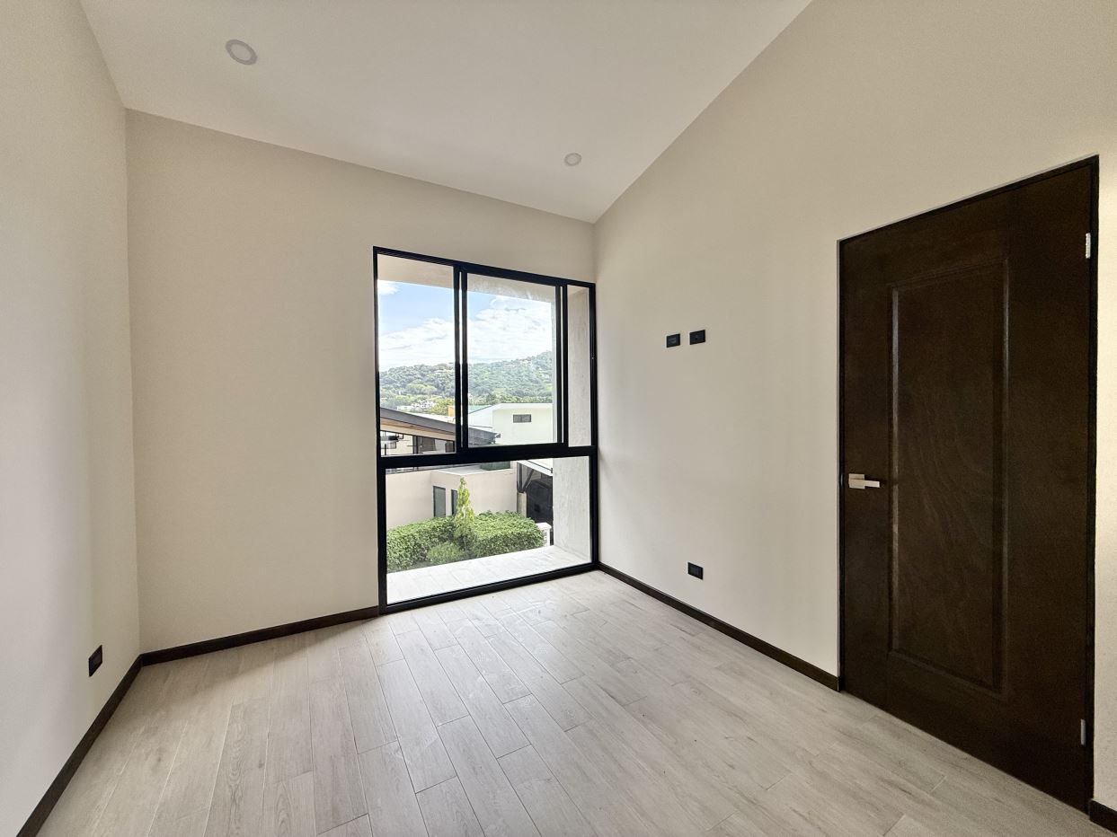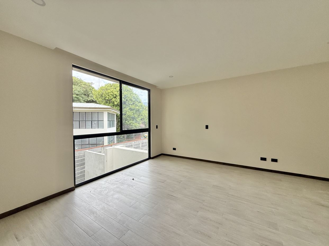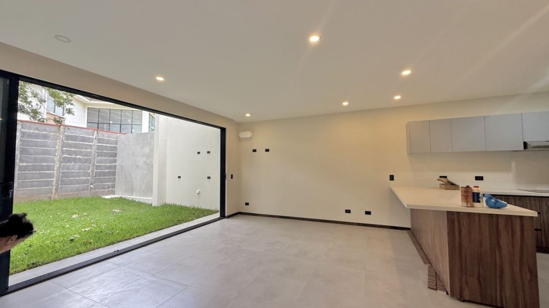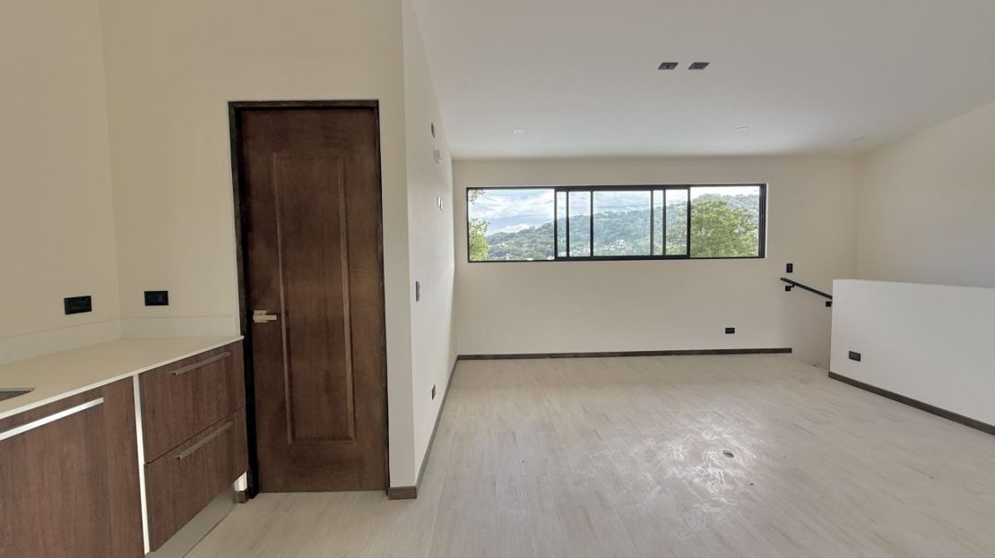 Distribución de la casa:• 3 habitaciones + 1 habitación adicional en el tercer piso con mini cocina• 3.5 baños (baño completo en la habitación del tercer piso)• Amplia sala, comedor y cocina integrada con línea blanca incluida• Terraza grande con vista espectacular a las montañas• Área de lavandería independiente• Ventanas corredizas y gran iluminación natural• Amplio jardín privado• Previsiones para aire acondicionado en sala y habitaciones• Parqueo para 2 vehículos