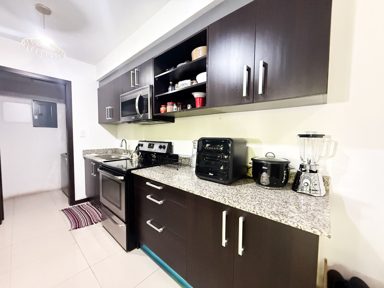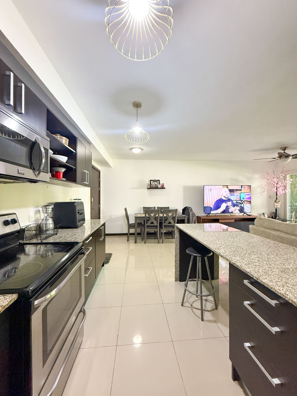 Descripción del apartamento• 100 m² en primer piso• Amplia terraza rodeada de paz y naturaleza• Mucha iluminación natural y espacios cómodos• 2 habitaciones• 2 baños completos• Walk-in closet• Línea blanca incluida• 2 parqueos