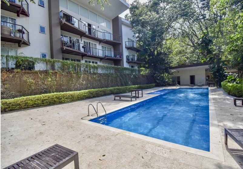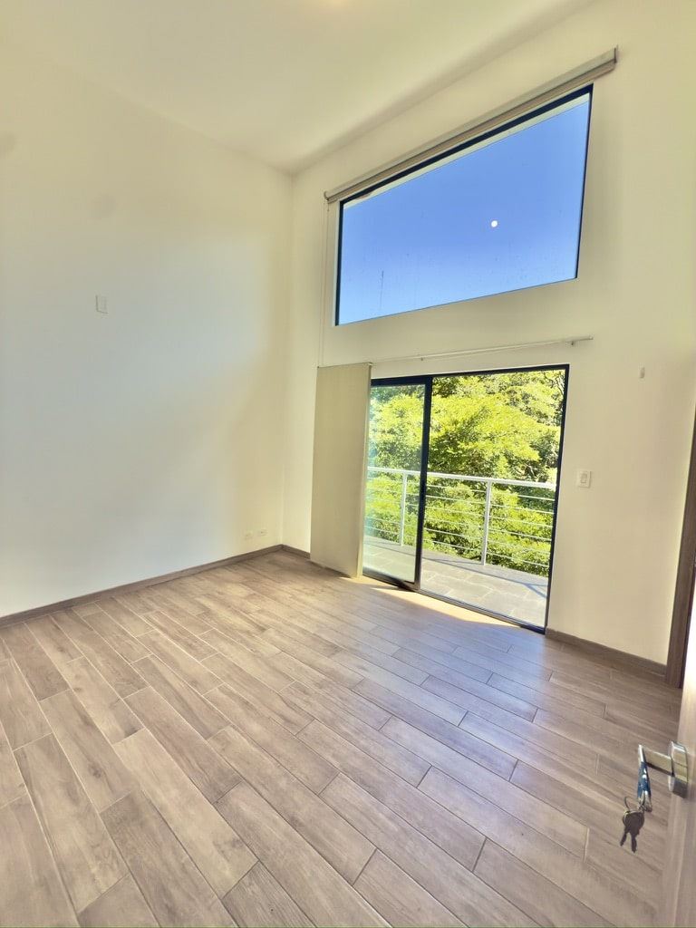 Modern loft-style apartment for rent in San Nicolás de Bari II, a private condominium in Santa Ana. Surrounded by lush nature, with high ceilings, 3 private balconies, and breathtaking treetop views. Enjoy a peaceful, secure, and fresh environment—just minutes from everything you need.
