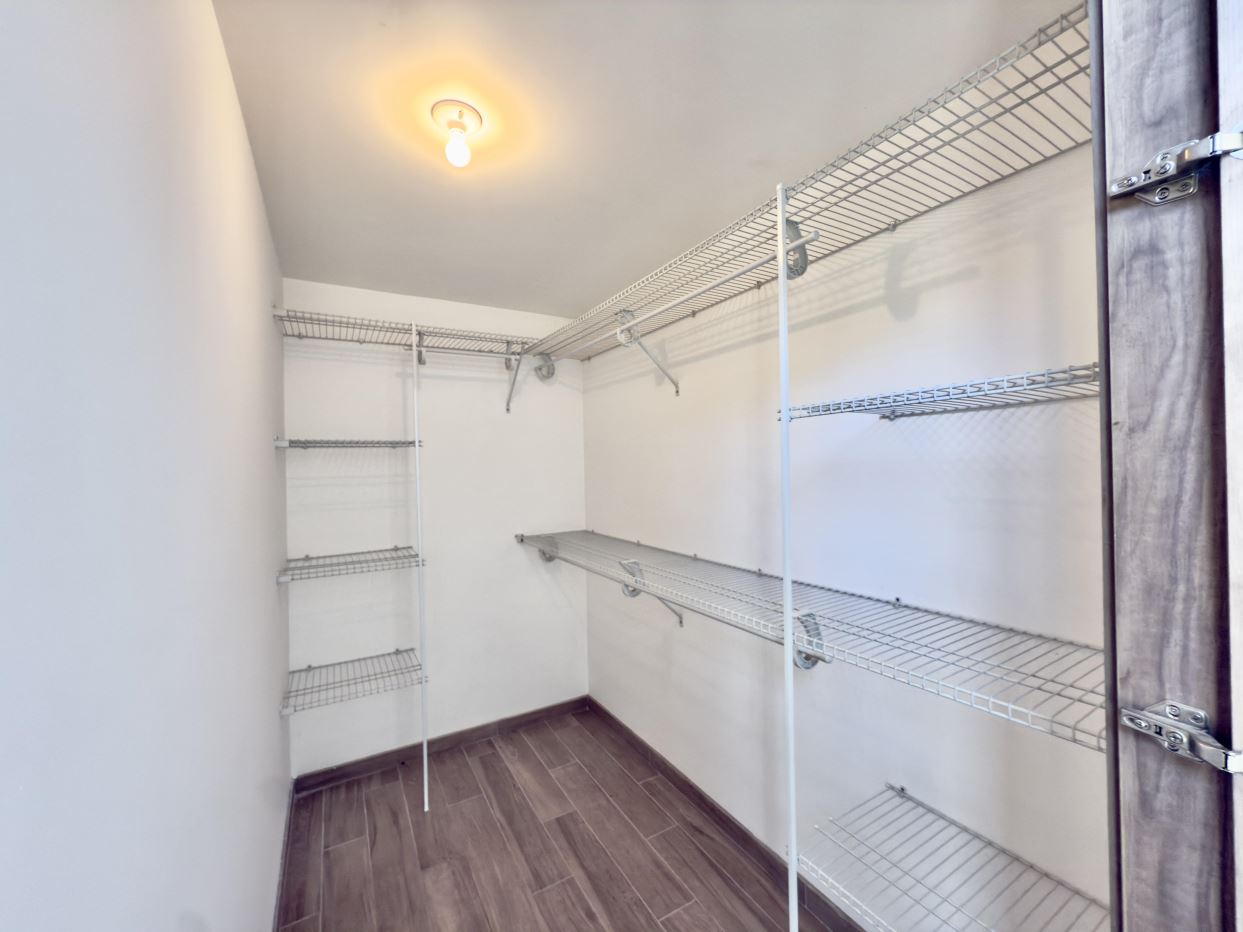1 habitación amplia con walk-in closet, techos altos, baño privado y acceso al balcón.