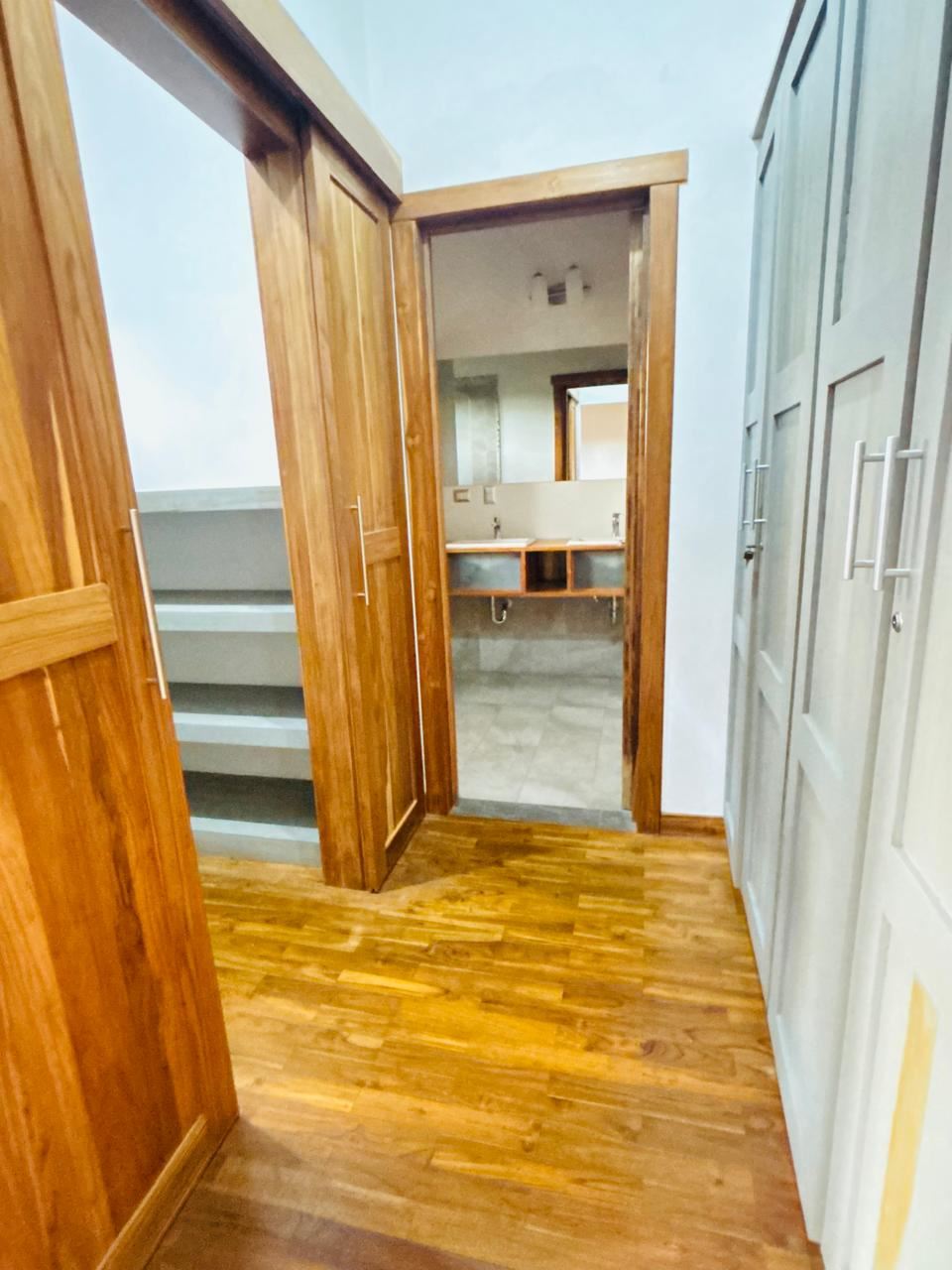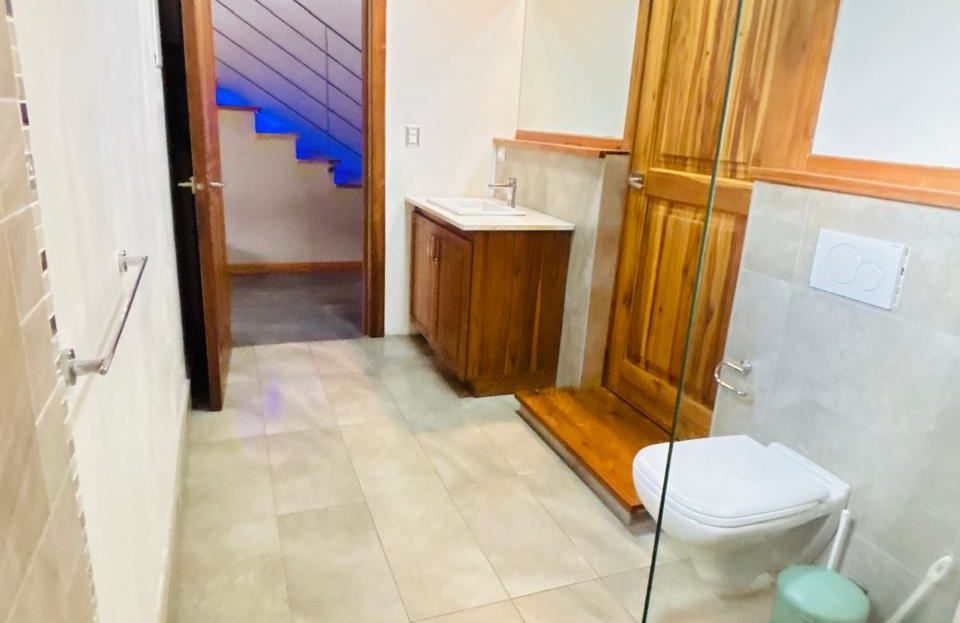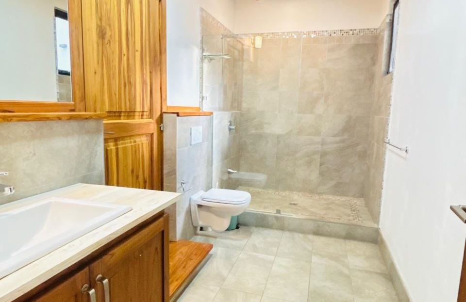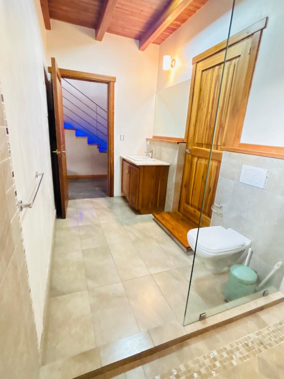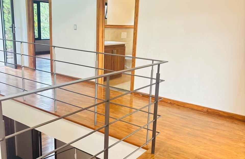 Planta Alta: Habitación principal con balcón privado, baño independiente y walk-in closet. Dos amplias habitaciones secundarias con clóset que comparten un baño completo.