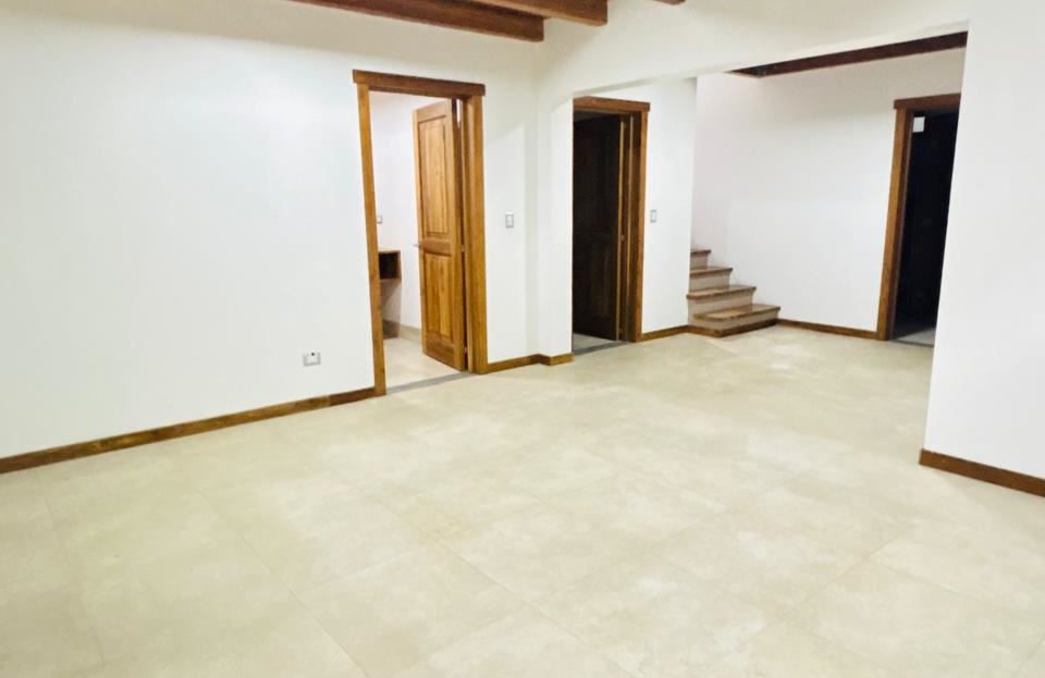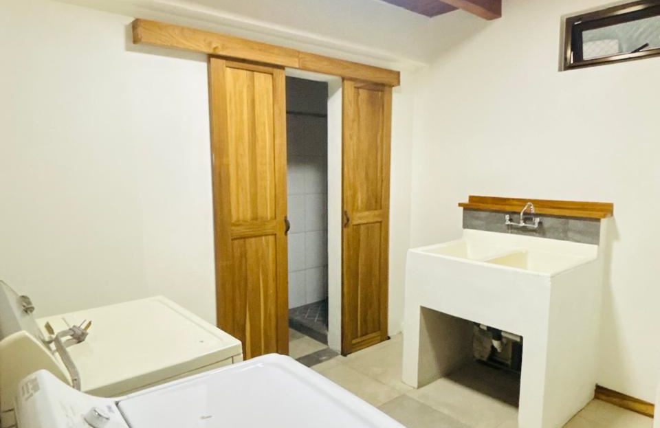 Sótano: Cochera para 2 vehículos, área de lavandería (cuarto de pilas) y cuarto de servicio completo con su propio baño y clóset.