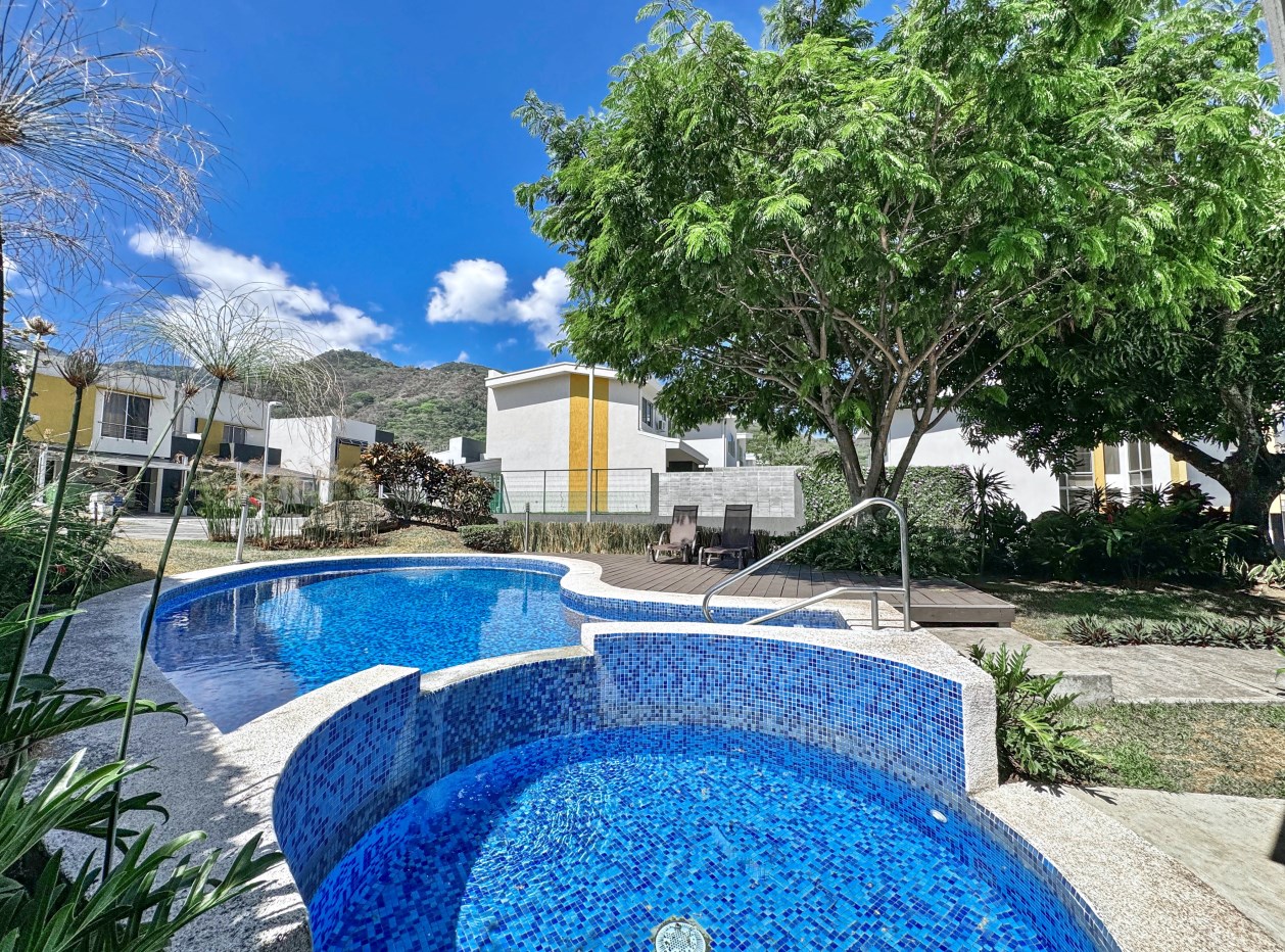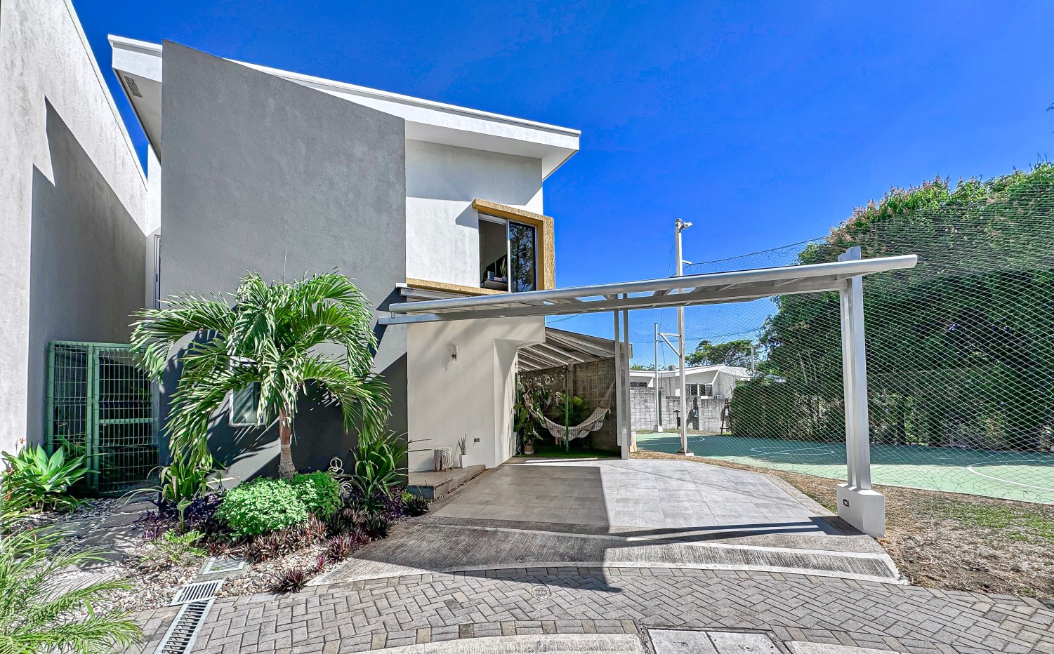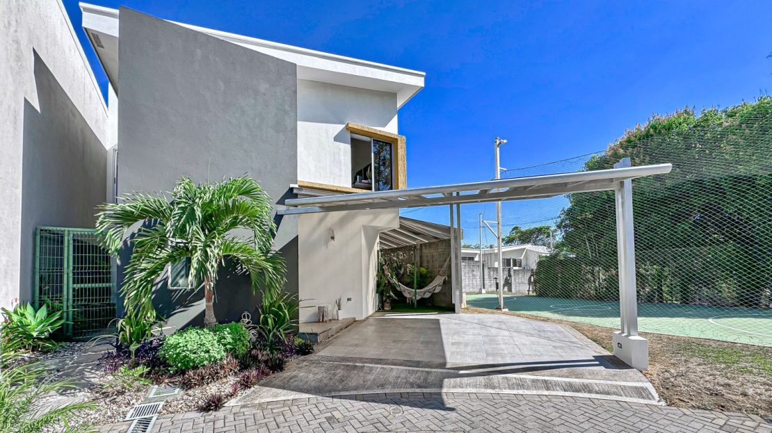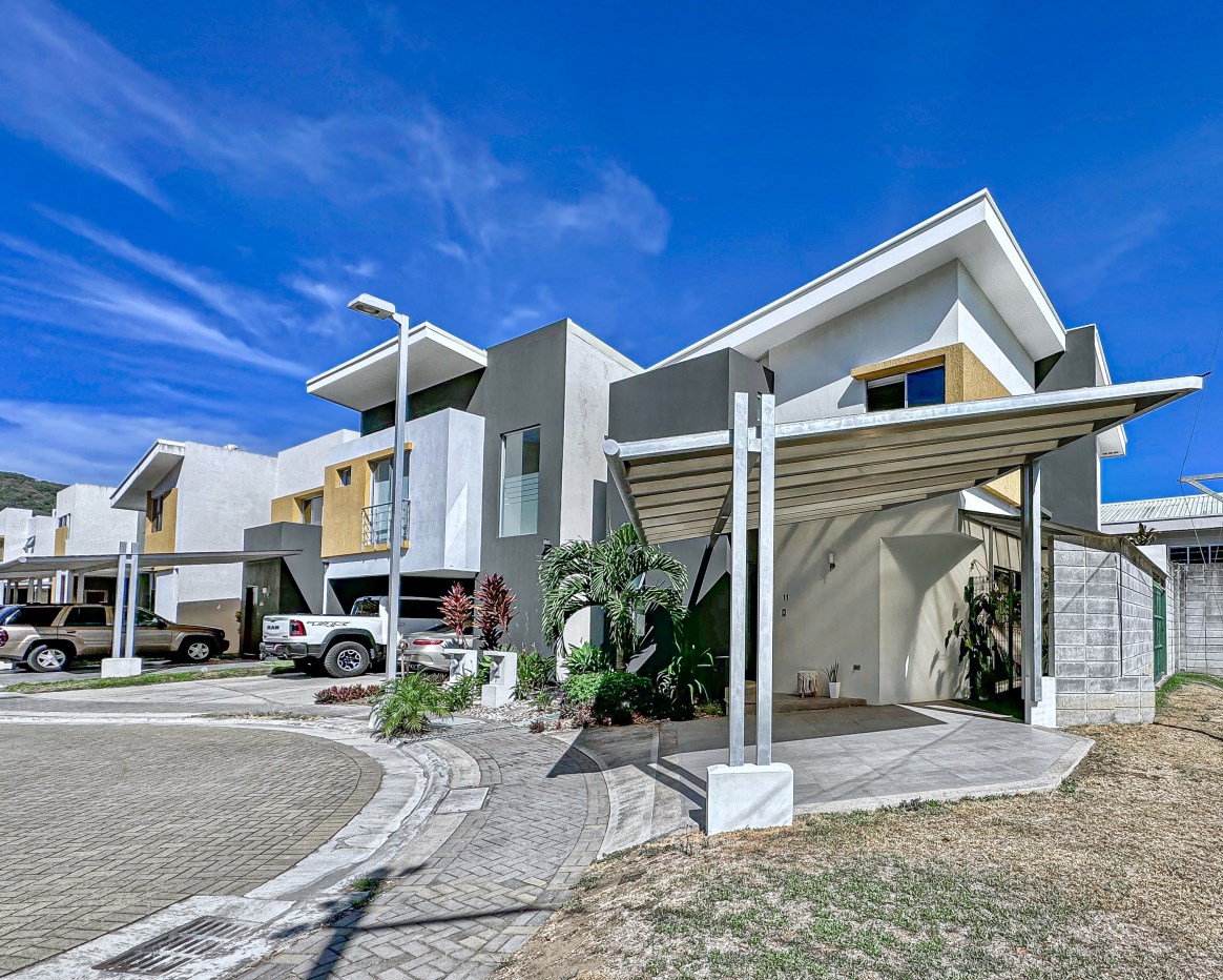 Welcome to Casa Timeless Santa Ana home for sale, San Jose, boasting a unique contemporary design. Casa Timeless is a 3 bedroom, 2.5 bathroom home nestled in an exclusive gated community located in Rio Oro of Santa Ana. The community boasts sub-terrain electric cabling, 24/7 security, a playground, pool, clubhouse with lounge and BBQ area, and multi-use basketball and soccer. Walking distance to mini-grocery & pharmacy. Quick access to Route 27 and town centers.