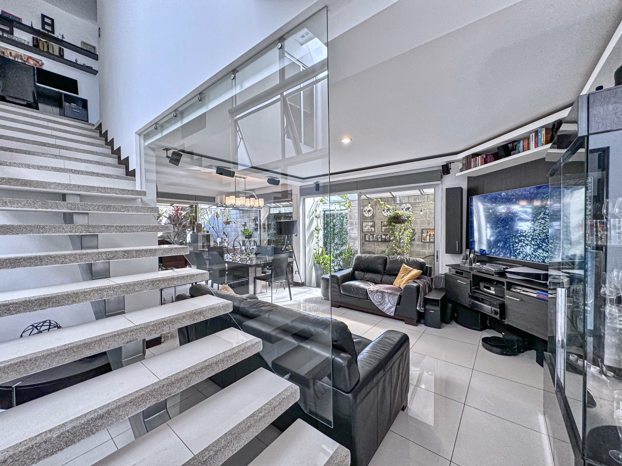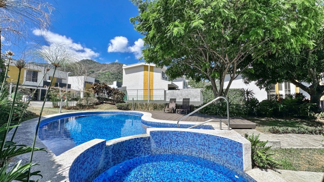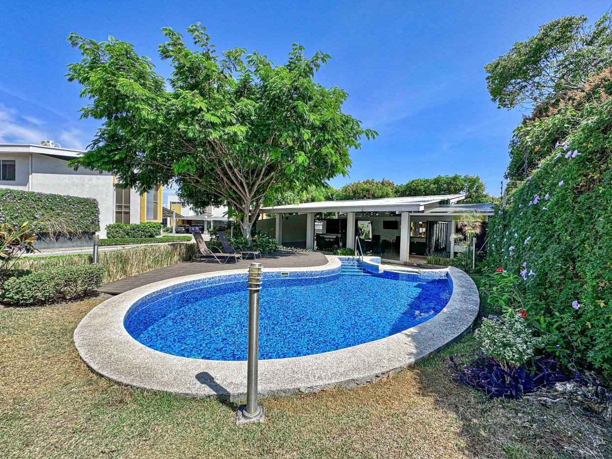 Welcome to Casa Timeless Santa Ana home for sale, San Jose, boasting a unique contemporary design. Casa Timeless is a 3 bedroom, 2.5 bathroom home nestled in an exclusive gated community located in Rio Oro of Santa Ana. The community boasts sub-terrain electric cabling, 24/7 security, a playground, pool, clubhouse with lounge and BBQ area, and multi-use basketball and soccer. Walking distance to mini-grocery & pharmacy. Quick access to Route 27 and town centers.